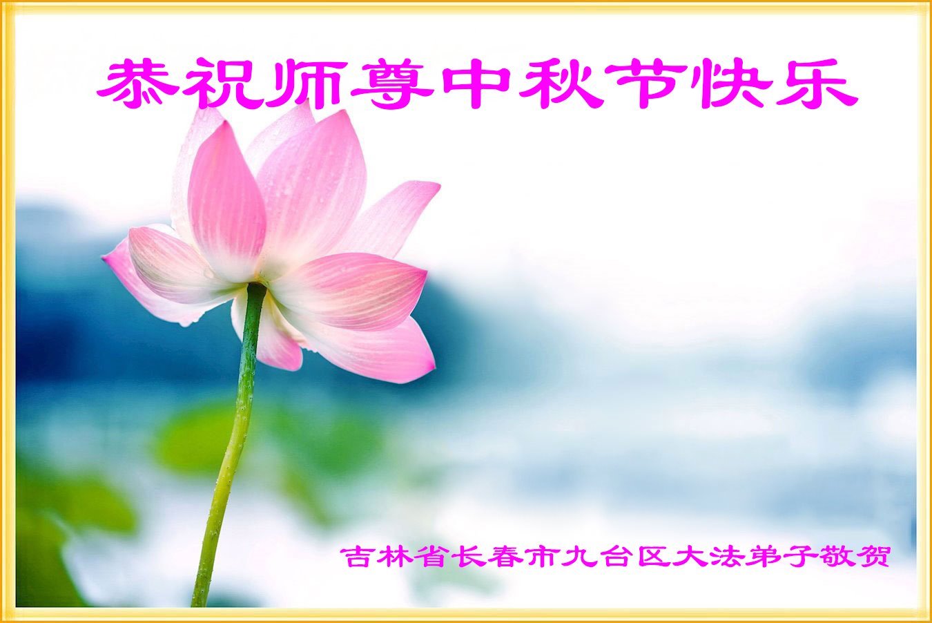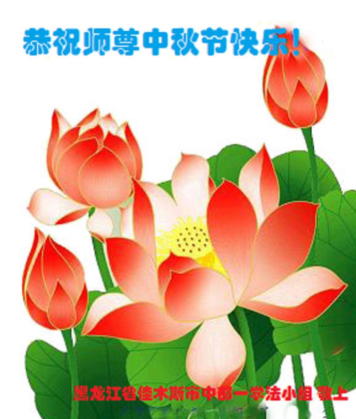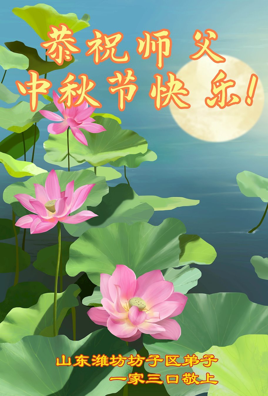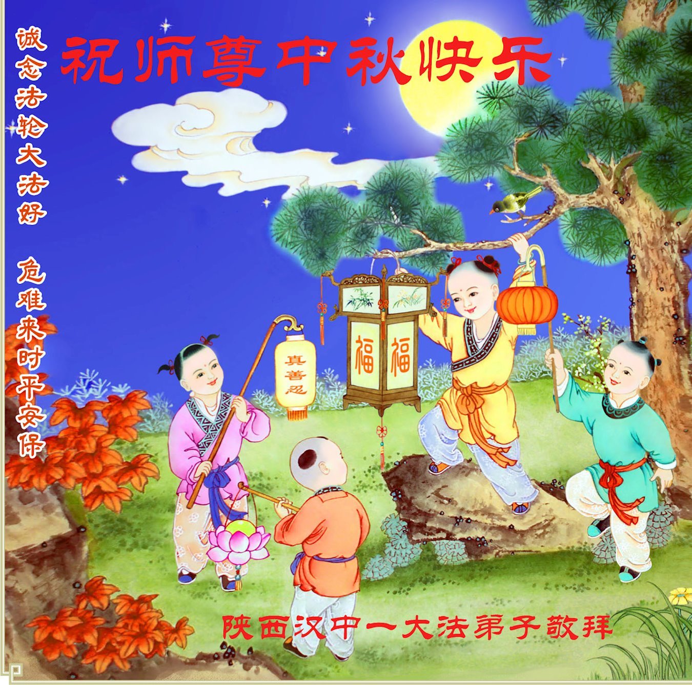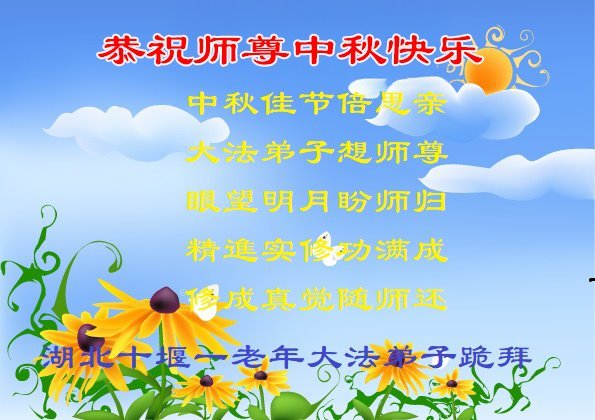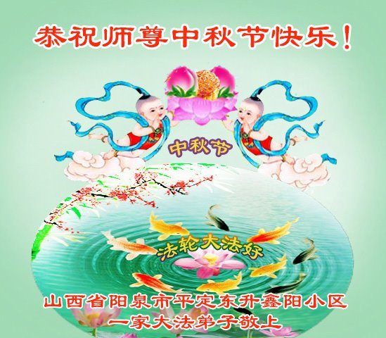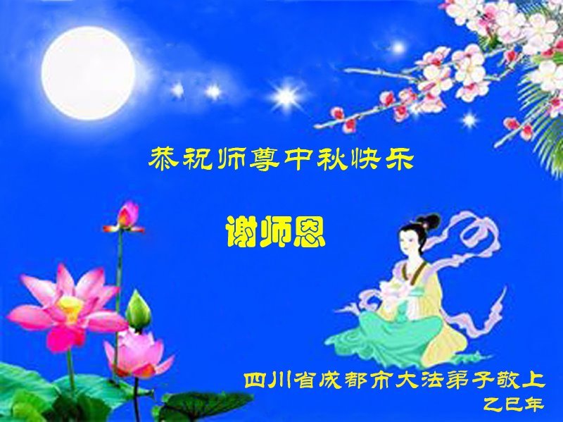 敬祝地球上最最尊敬的大法师父中秋节快乐!盼望大法师父早日回中国和您的弟子们团聚,愿您的弟子们早日脱离苦海!也祝福大师的弟子们中秋快乐!