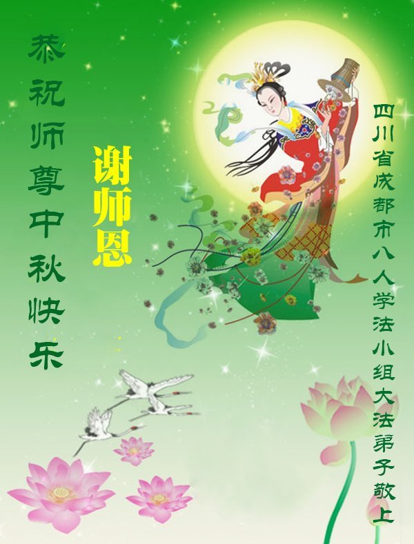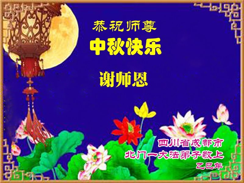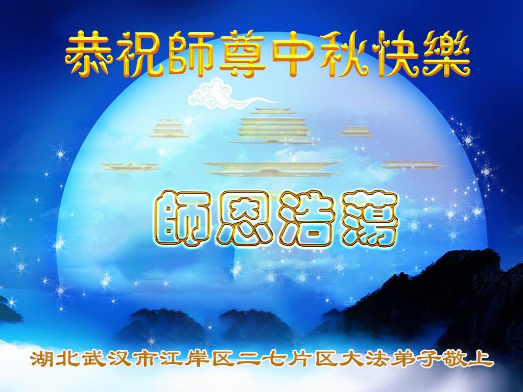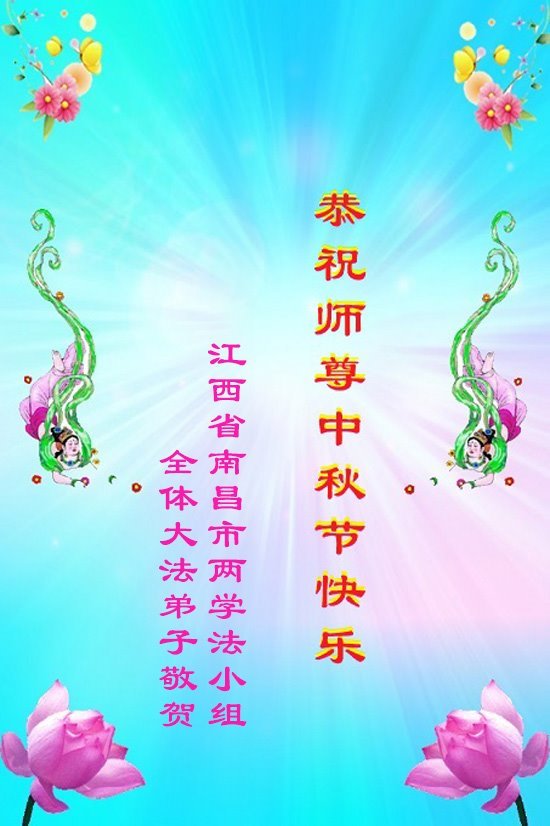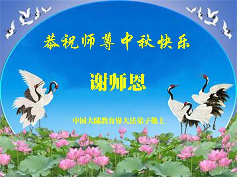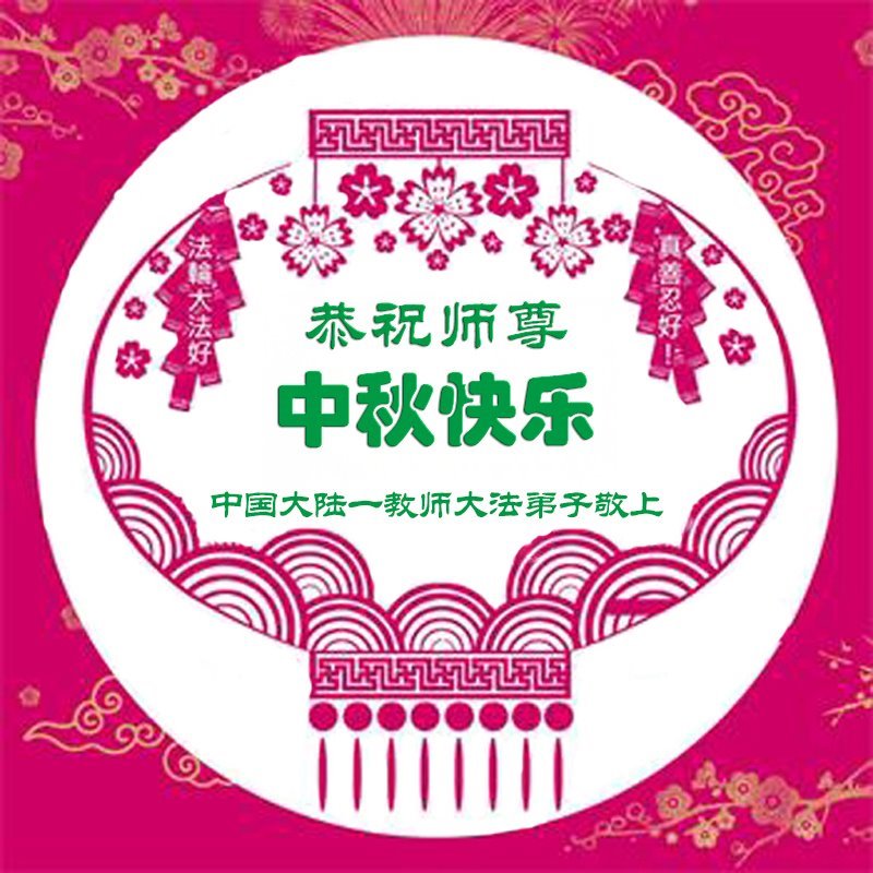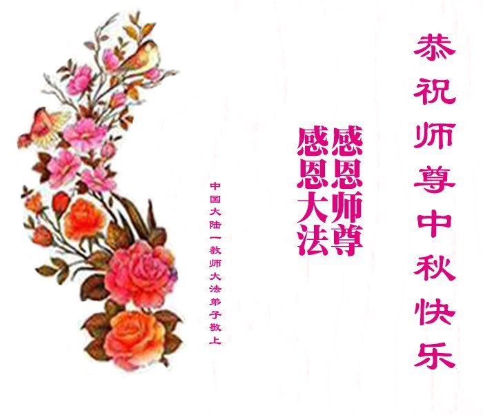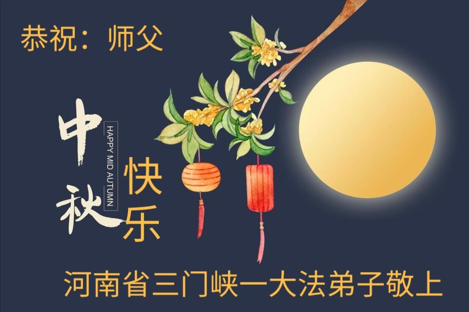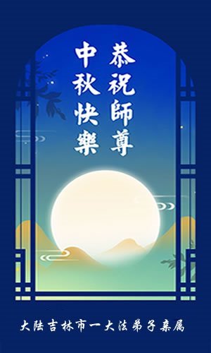 中秋佳节即将到来,在此祝愿李大师中秋快乐!愿中国人尽早抛弃邪*党-,过上真正属于人类的正常生活。愿大法弟子遭受的迫害尽快结束,能够正常的修炼,从而更好的福益于全社会、全人类。