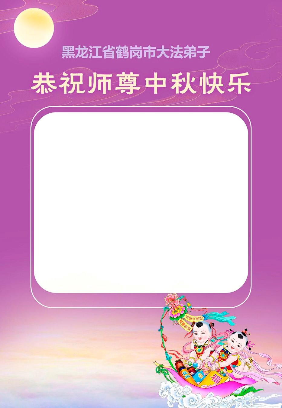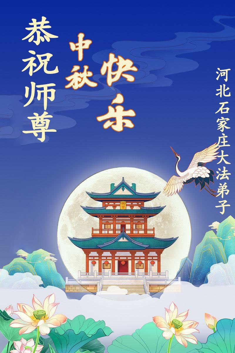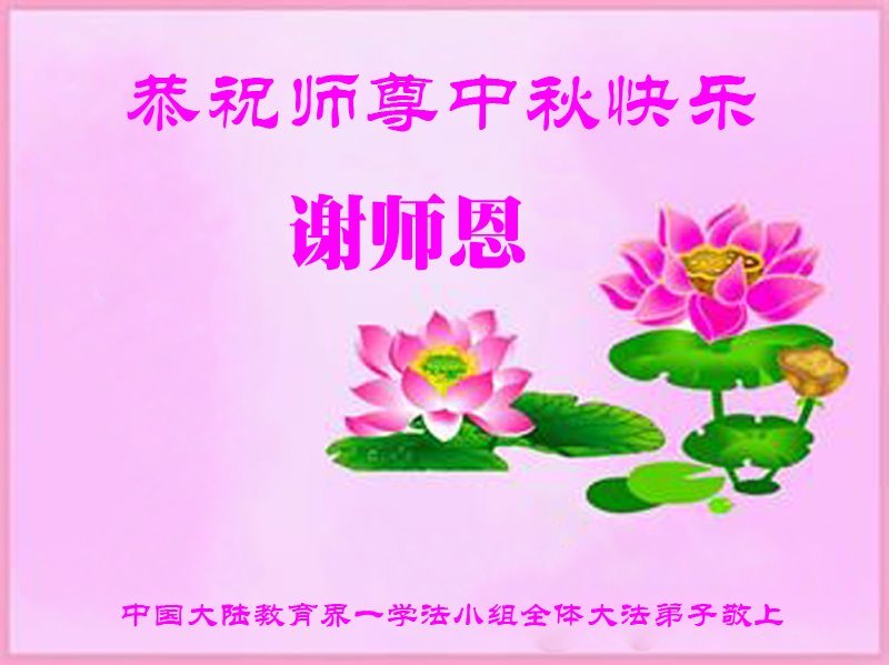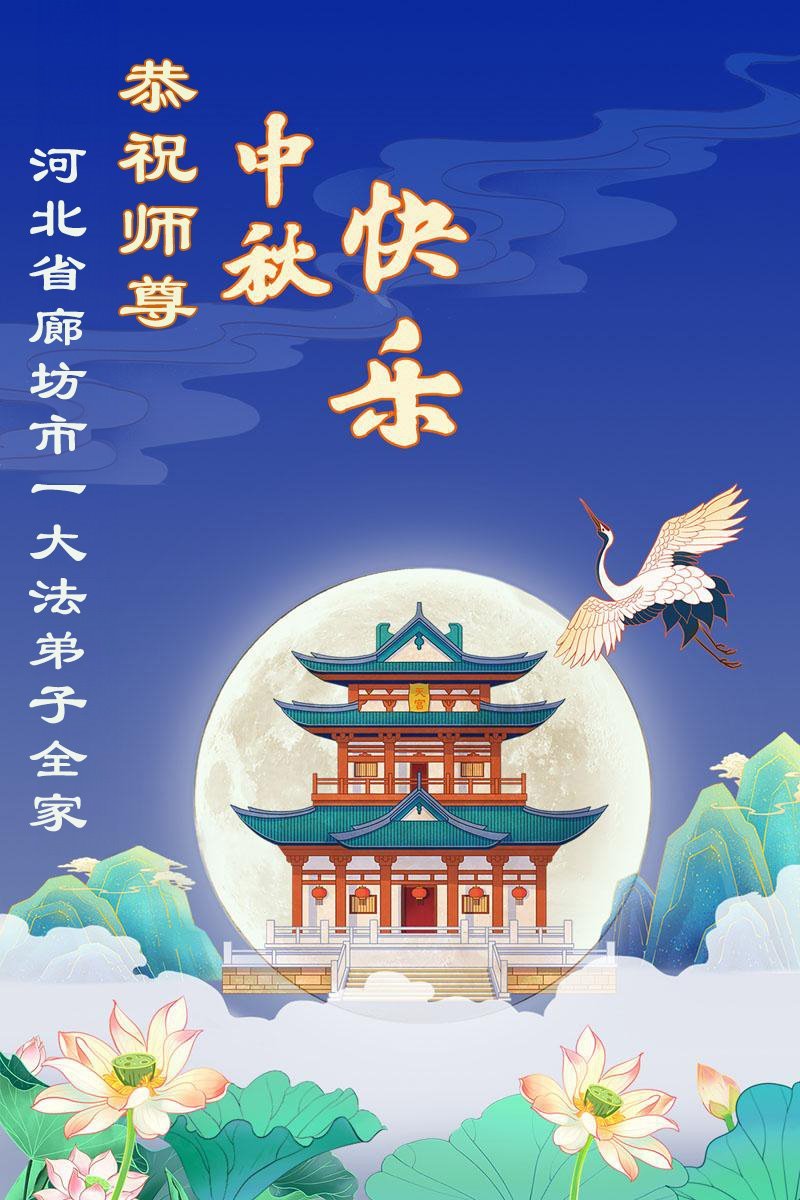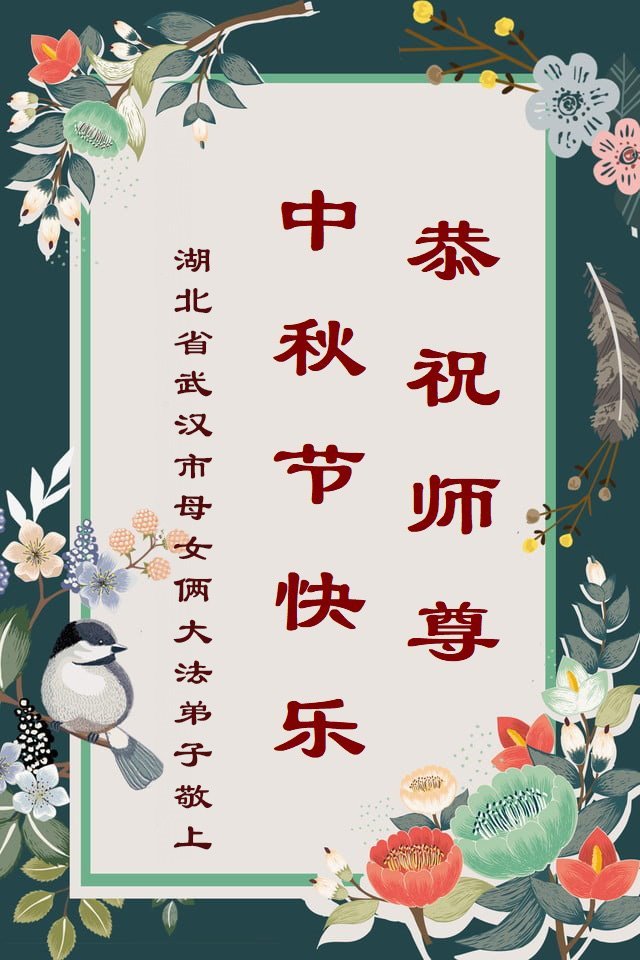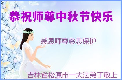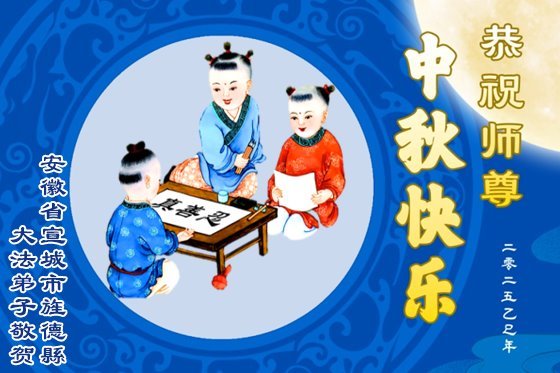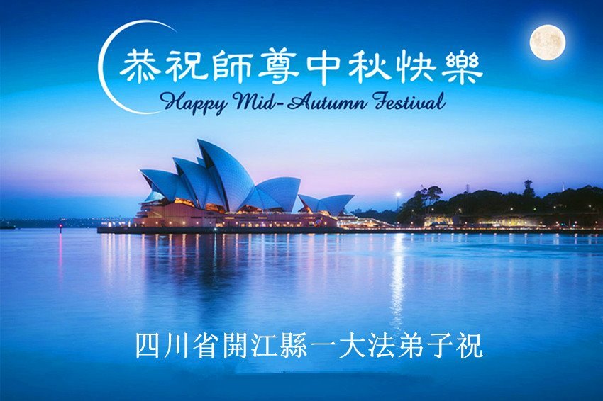 中秋佳节即将到来,在此祝愿李大师中秋快乐!愿中国人尽早抛弃邪*党-,过上真正属于人类的正常生活。愿大法弟子遭受的迫害尽快结束,能够正常的修炼,从而更好的福益于全社会、全人类。