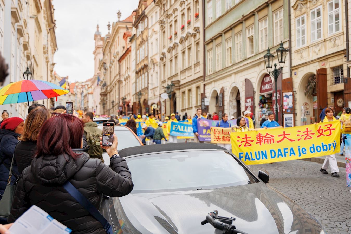 报道中说:“十月十一日,星期六,法轮功学员在布拉格举行了游行,提醒布拉格市民与游客关注(中共对该信仰团体的持续)迫害。世界上其它令人担忧的事件使得法轮功受迫害这个话题被淡化了,但是中共当局发动的这场迫害已持续了二十六年,杀害了成千上万中国人。”