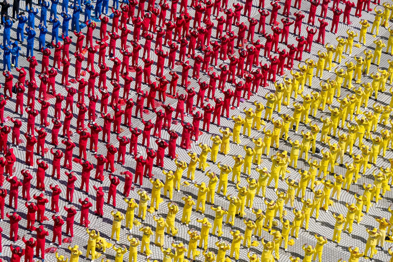 排字活动结束后,举行集体大炼功展示五套祥和的功法,并以横幅“法轮大法好”和“师恩浩荡 谢谢师父”向李洪志师父表达敬意。