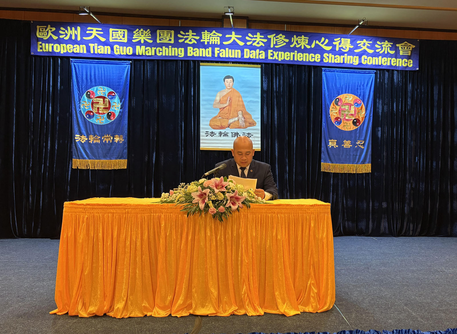 修炼心得交流会由两位乐团成员主持。他们致开幕词时说:“作为天国乐团的一员,我们不仅用音乐在证实法、救度众生,同时在这个过程中也在不断地修炼自己——放下执著、提高心性、相互配合、形成整体。”