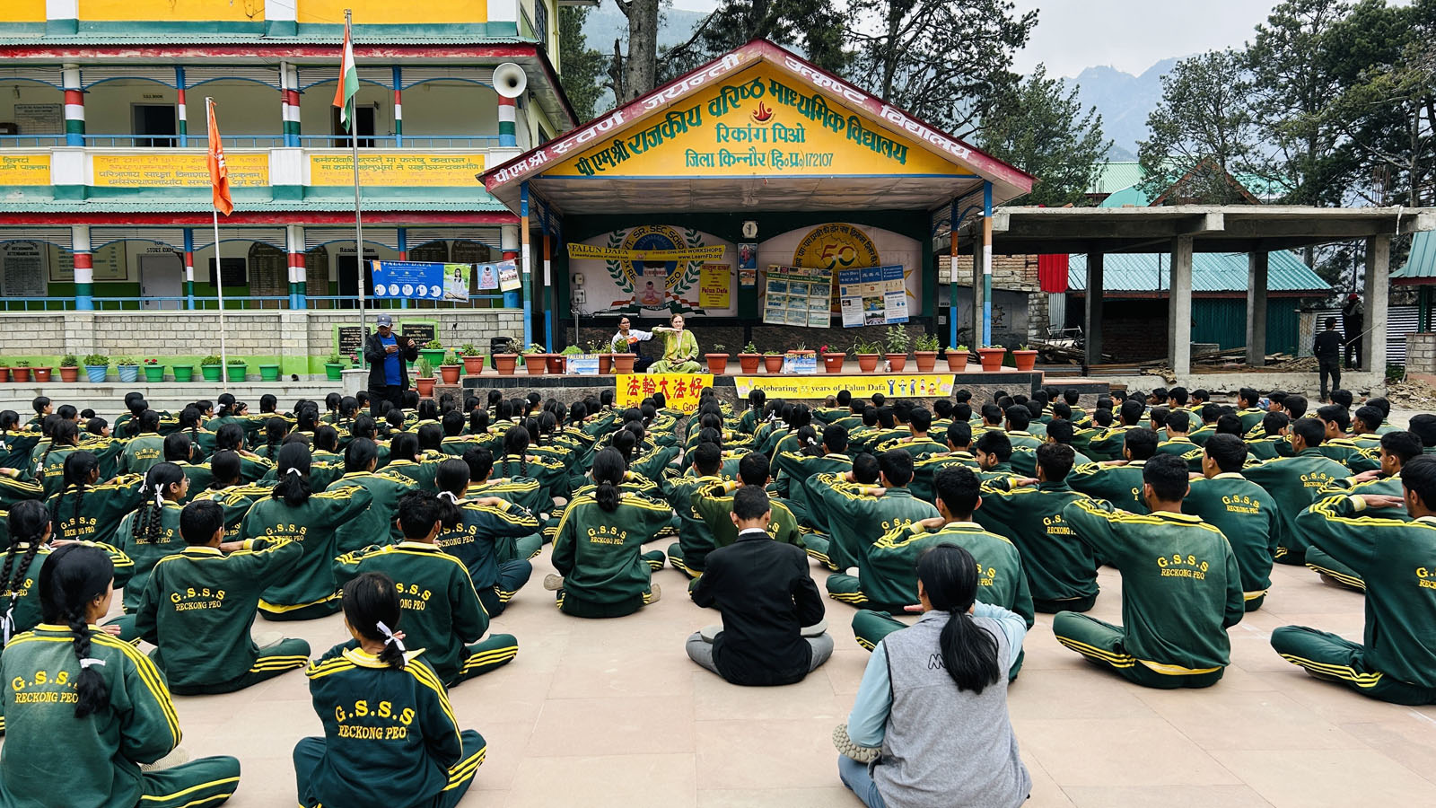 这位法轮功学员联系了当地的学校和社区组织,举办弘法活动。她带去了书籍、杂志、传单、书签、海报等介绍法轮大法、讲述中共在中国迫害法轮功的真相资料。在这次行程中,法轮功学员在十三所学校和一个儿童拳击俱乐部办弘法班,并走访了瑞康佩奥(Reckong Peo)、桑格拉(Sangla)、尼查尔(Nichar)和蓬达(Ponda)等地区。