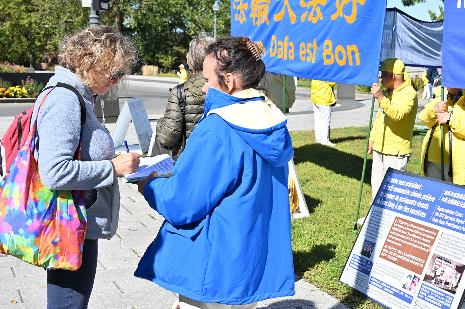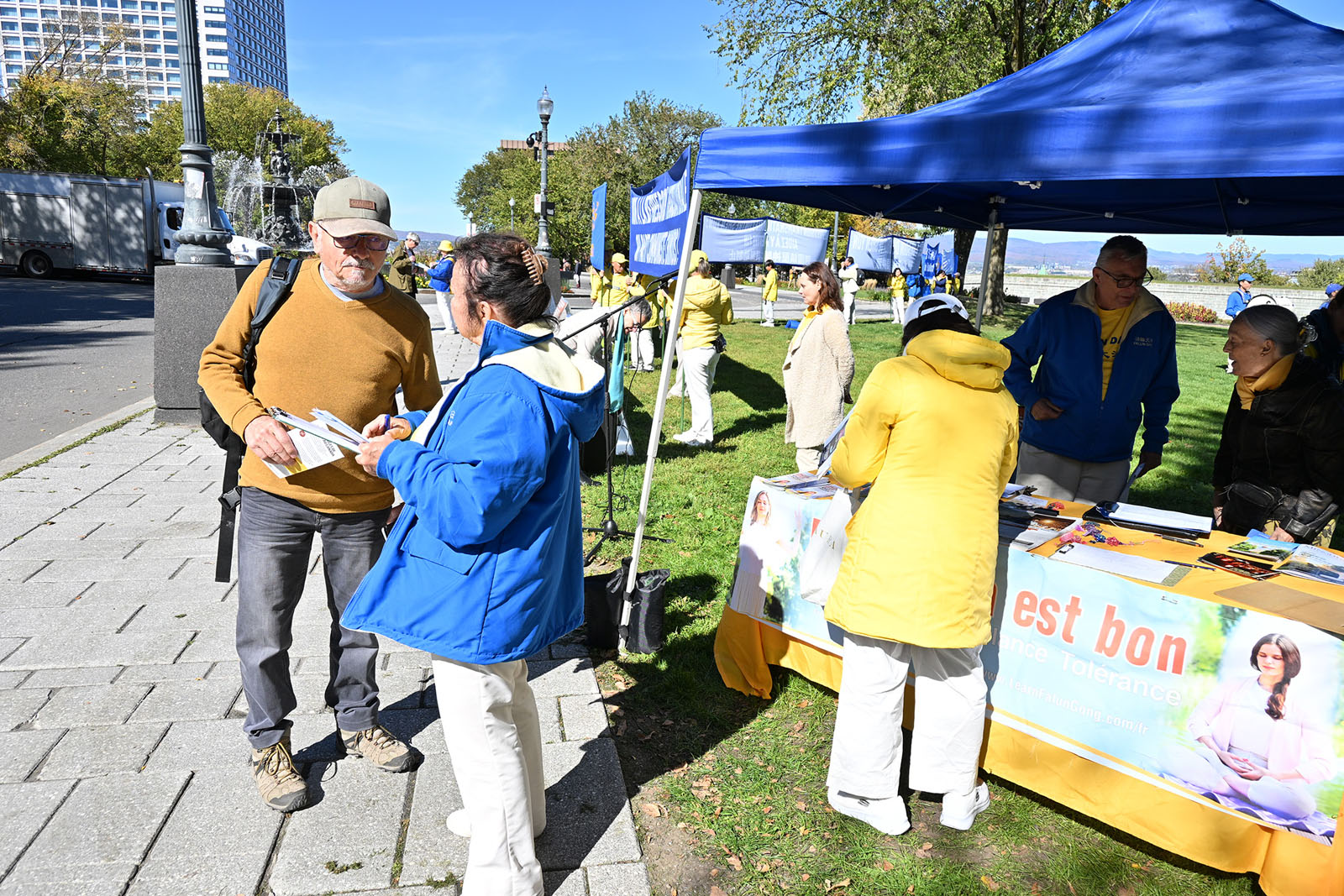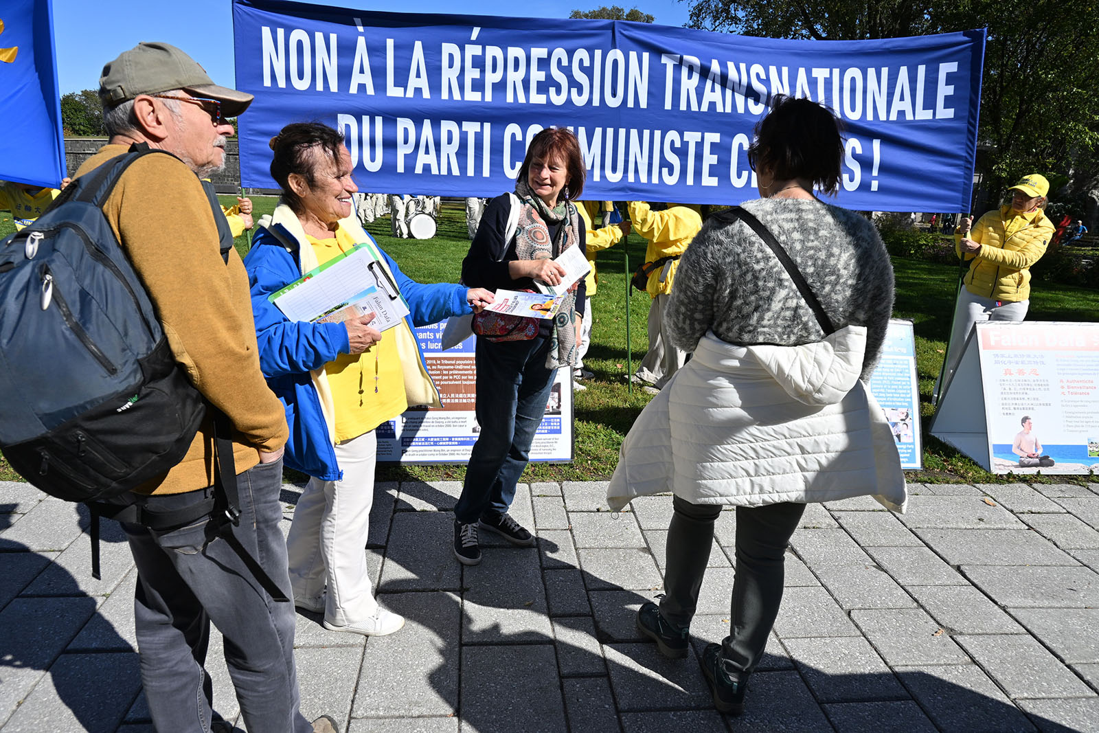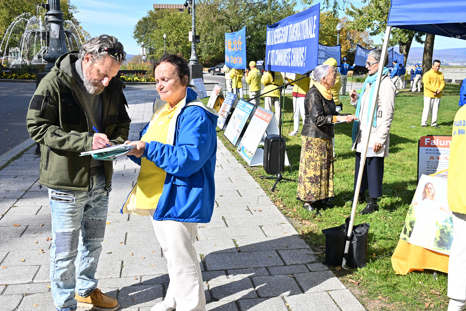 国民议会广场也是魁北克议会大厦(Parliament Building of Quebec)所在地,活动期间议员们也在开会。来自舍布鲁克(Sherbrooke)和蒙特利尔(Montreal)的部分法轮功学员也参加了这次活动,揭露中共跨国镇压,唤起民众关注。