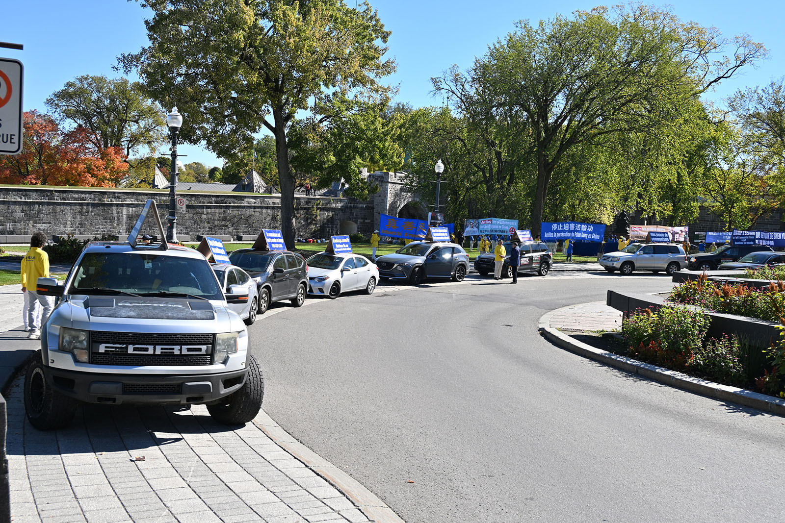 ![]() 图9~10:活动期间,学员们组织了揭露中共迫害的汽车游行,队伍从国会大厦出发,终点是加拿大最繁忙的购物中心之一圣福伊广场。 |
