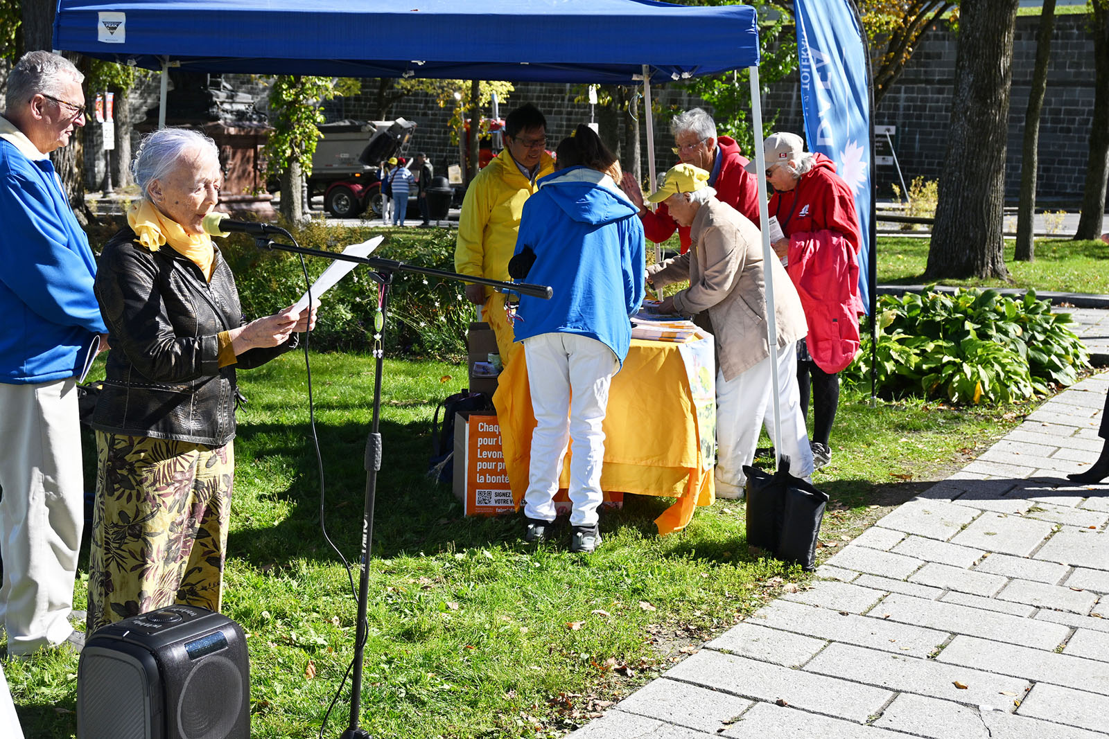 魁北克法轮大法学会会长妮可·米洛特(Nicole Milot)在活动上发言。她讲述了中共在魁北克对修炼真、善、忍的法轮功学员进行跨国镇压的严重情况。