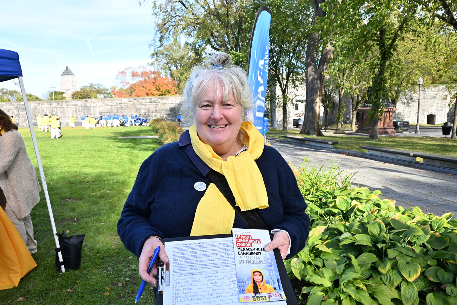 法轮功学员米歇琳(Micheline)参加了这次活动,以唤起人们对中共跨国镇压的关注。她说:“我不想失去我们的权利和自由。我不想看到这里出现(中共)镇压。”