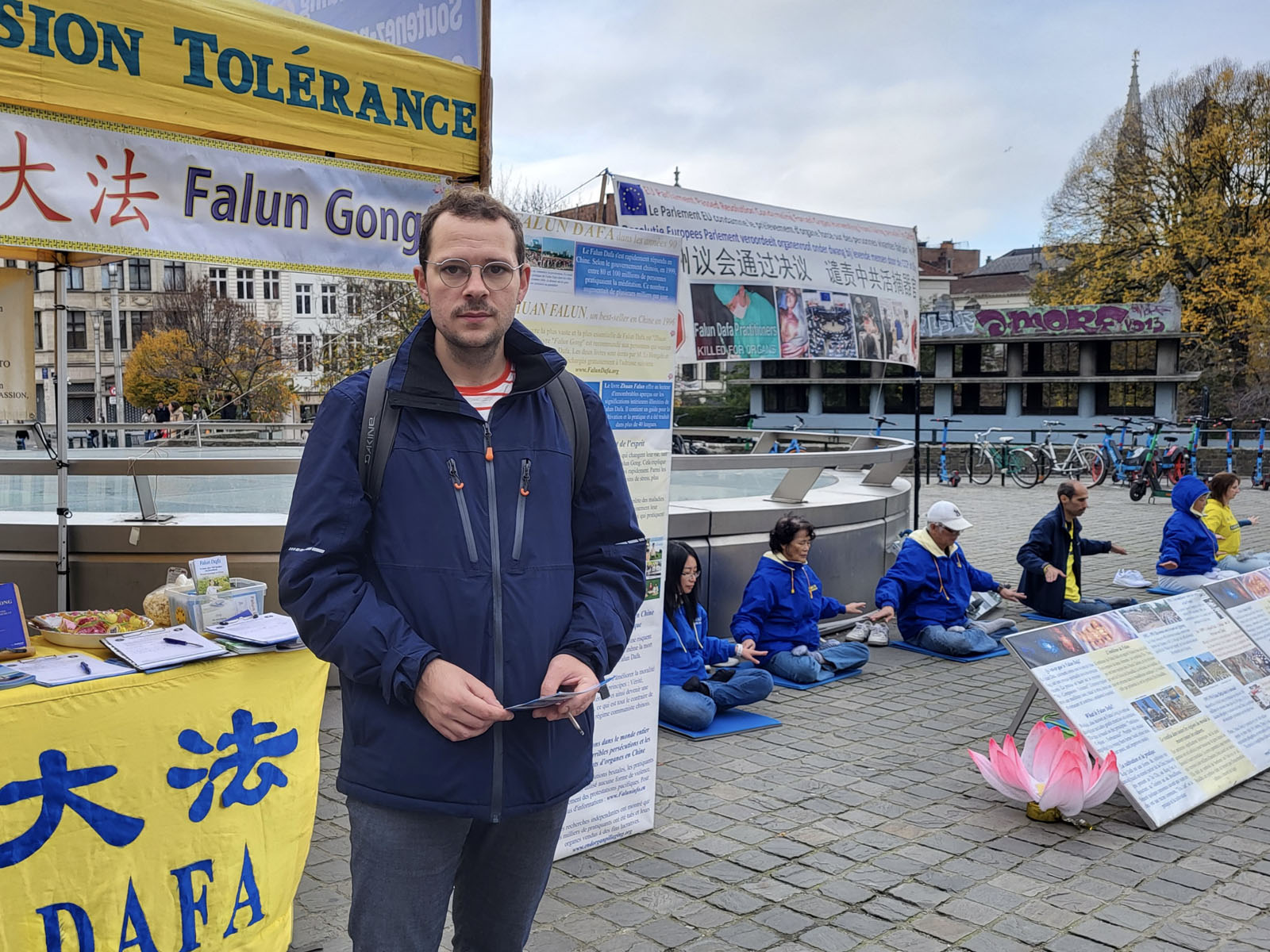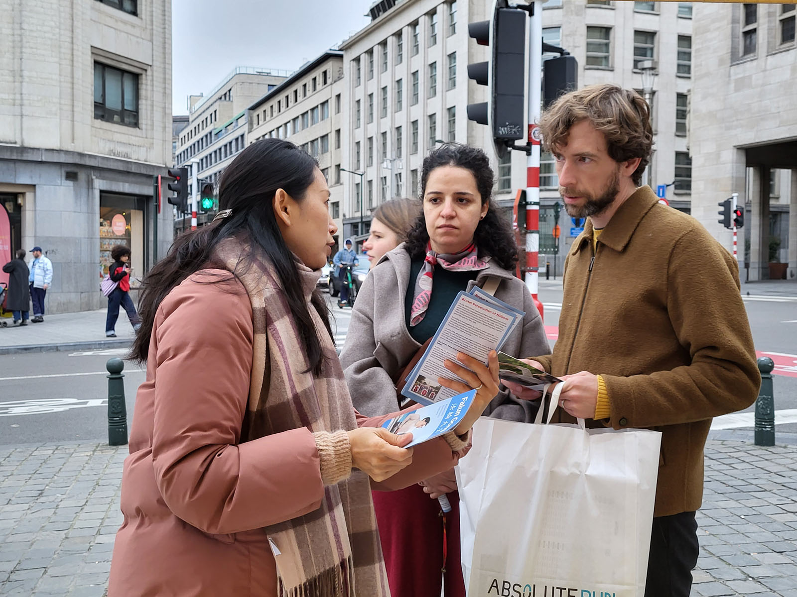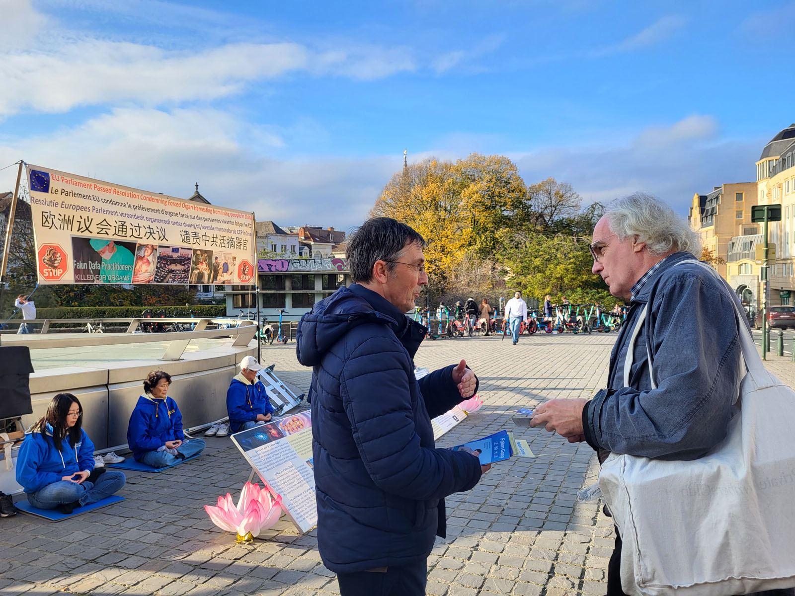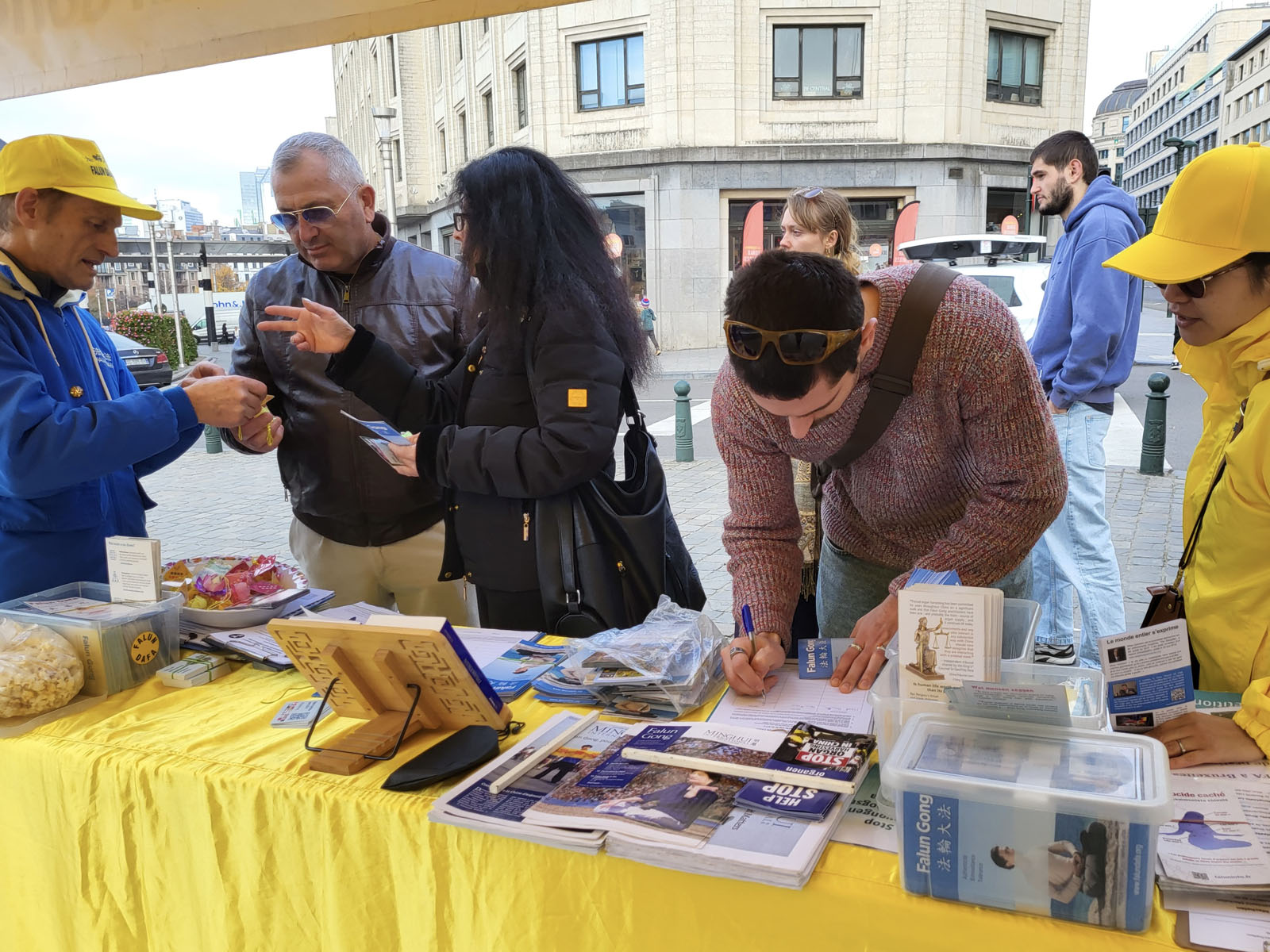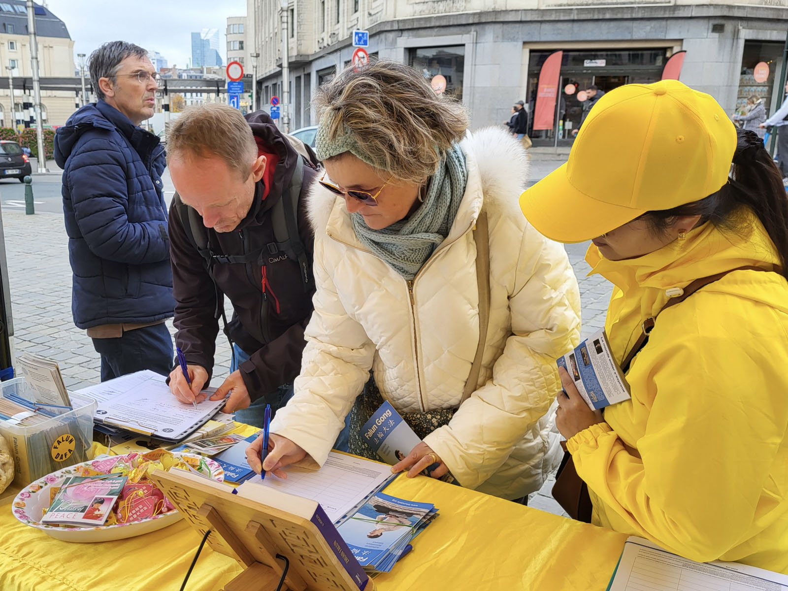 【明慧网二零二五年十一月十二日】(明慧记者唐容布鲁塞尔报道)二零二五年十一月八日,在布鲁塞尔阿尔贝蒂娜广场(法语:Place de l'Albertine )法轮功学员举办反迫害活动,吸引不少民众驻足关注。一位明白真相的人签名支持反迫害时表示:“我强烈谴责中共活摘器官的行为”。活动现场很多人索取资料,希望学炼法轮功,法轮大法的理念真、善、忍深得人心。