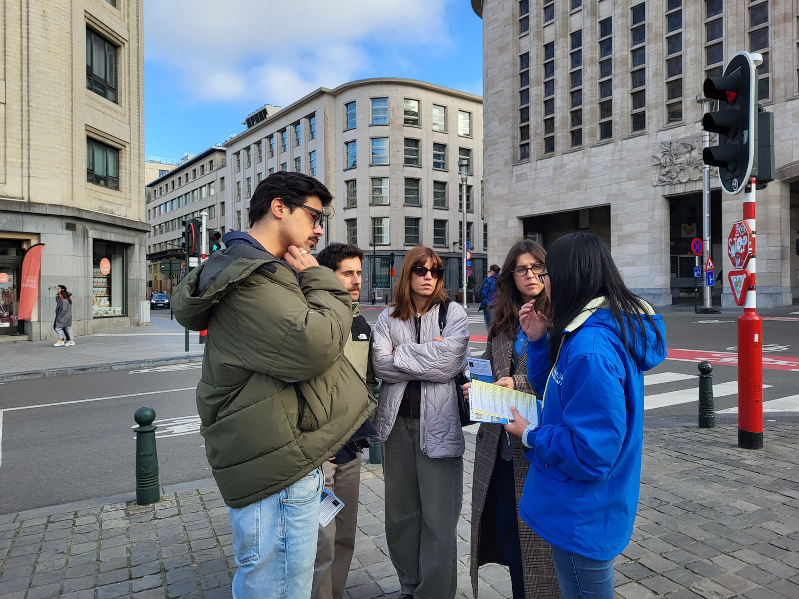 图1~5:二零二五年十一月八日,在布鲁塞尔阿尔贝蒂娜广场(法语:Place de l'Albertine )法轮功学员举办反迫害活动,很多民众关注迫害的真相。