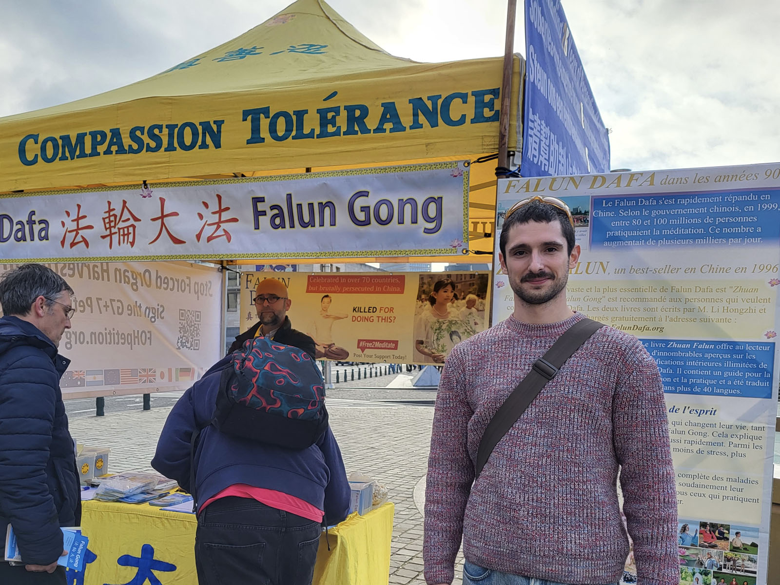 埃米利因·萨巴吉里( Emilin Sabagiri)是欧洲之星(Eurostar) 铁路公司的工程师。他路过活动场地看到迫害真相展板内容,与学员长谈,他认为中共活摘法轮功学员器官牟利,发生这样的事简直疯了,太糟糕了。他希望能了解更多真相。