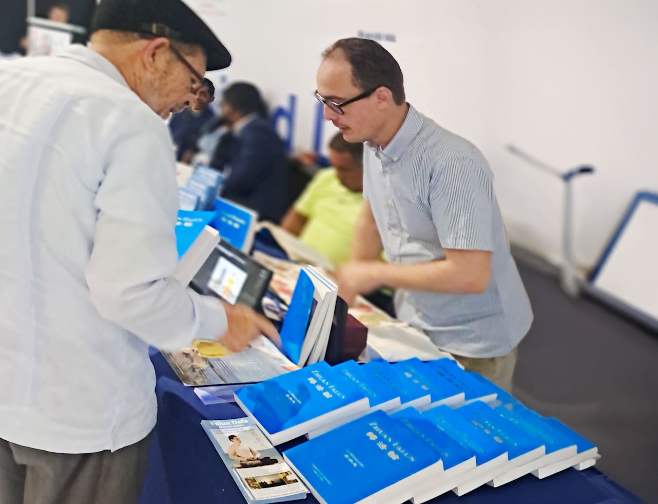 图书销售代表拉斐尔·罗德里格斯(Rafael Rodríguez)问道:“这颜色真漂亮,这么明亮!我能在本地书店找到吗?”他被《转法轮》鲜亮的颜色和拿在手中时感受到的能量所打动。与学员交谈后,他表达了希望能把这本书引进到当地书店的愿望。