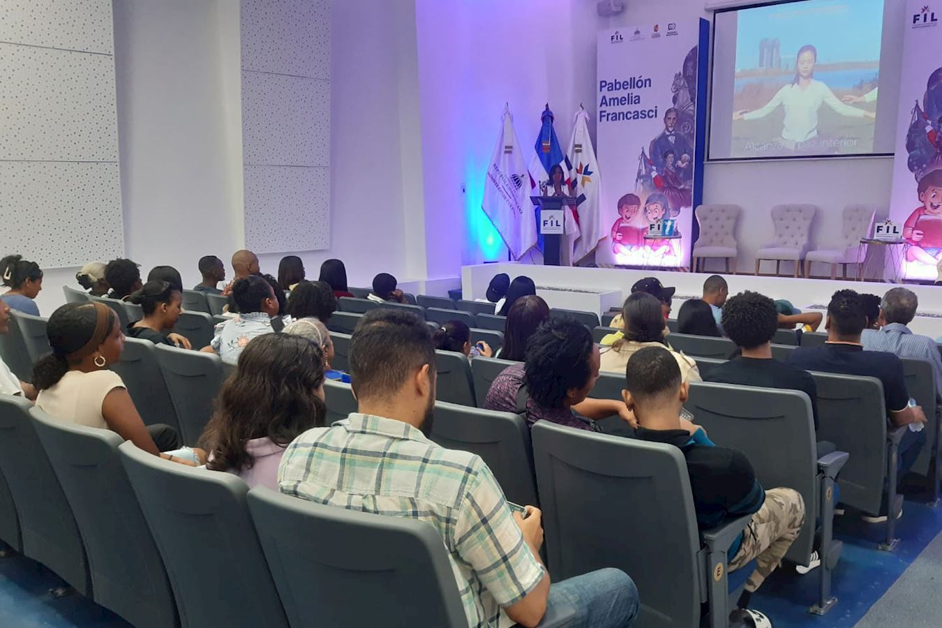 作为书展文化活动的一部分,学员们还在多米尼加电影资料馆放映了由卢德米拉·奥里奥尔(Ludmila Oriol)导演的短片《莲花的故事》(The Lotus Flower Story)。该活动是应书展主办方的邀请,特别为儿童观众而设计的。影片通过一个美丽的故事,以温和而生动的方式传递真、善、忍的核心价值。