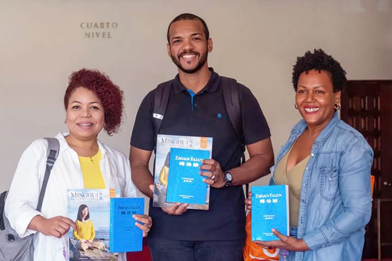 “《转法轮》书籍的亮蓝色封面让我眼前一亮,感觉这就是我一直在寻找的书。”一位名叫露西亚(Lucía)的年轻女子说,“我只是看着这本书,触摸到这本书时,就感到有一种特别的连接。”