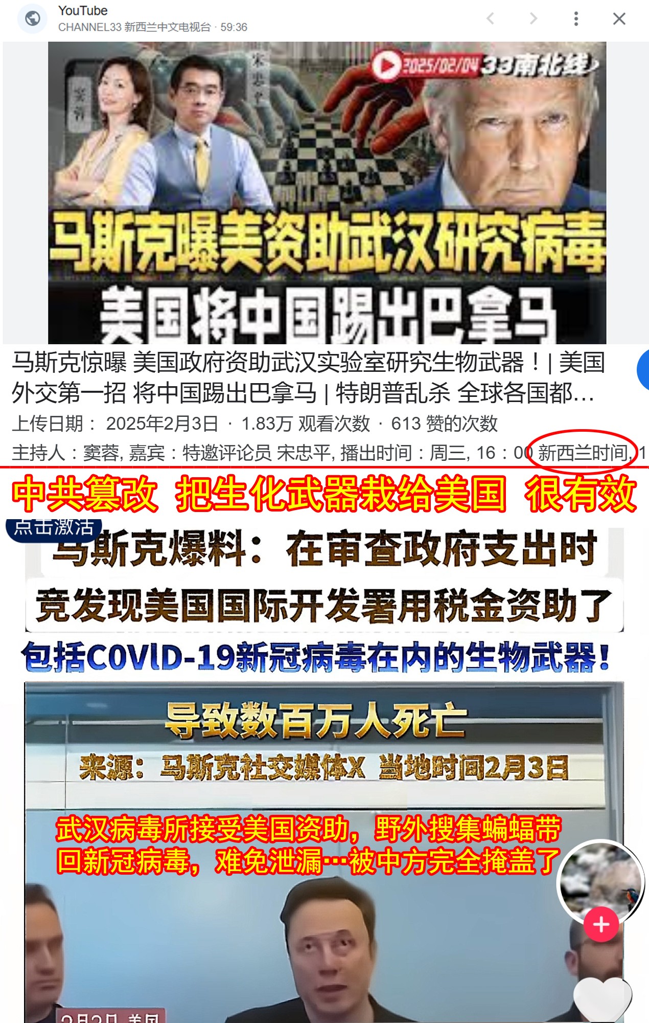 中共方为中国人量身制造的假新闻都有些什么呢?其中,他们利用马斯克的热度,删去武汉病毒所,指责美国搞新冠病毒生物武器,造成新冠大流行,成功甩锅给美国——中国大陆无法翻墙看到真相的人,基本全信!这则冷饭热炒的假新闻,几乎举国的中国人都买单,这本身即是中共国的真相。