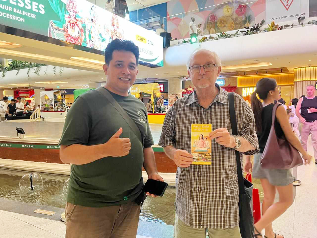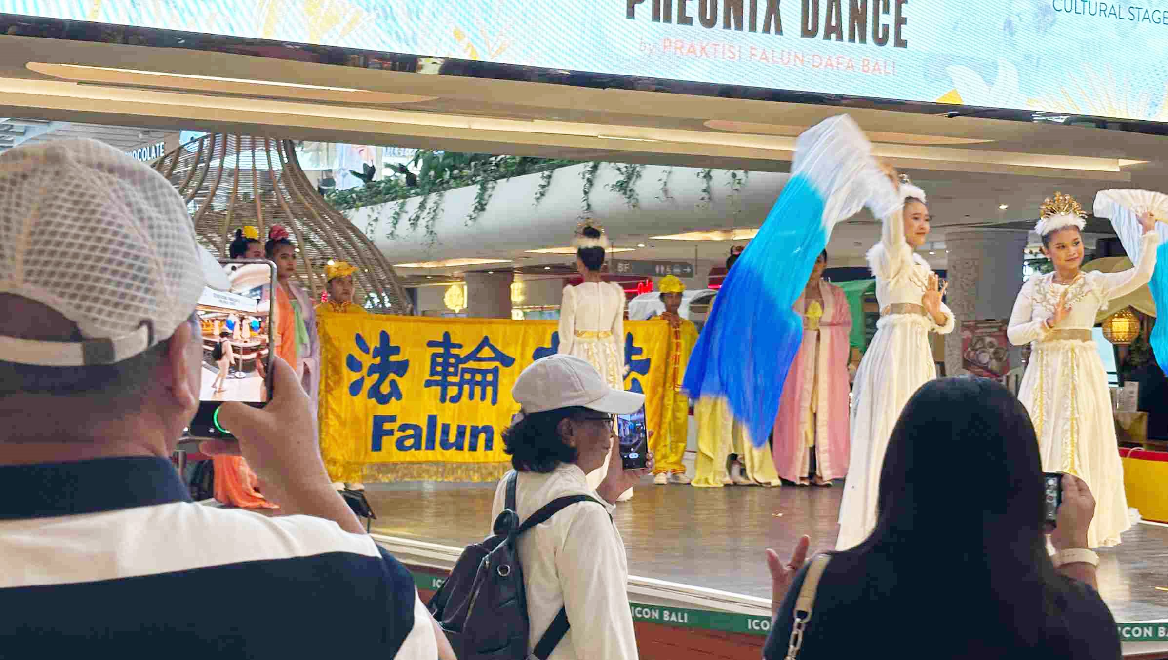 图1~4:法轮功学员在巴厘岛的大型购物中心(Icon Mall)的舞台上表演腰鼓和凤凰舞,一个小时的表演吸引了众多的游客。 |