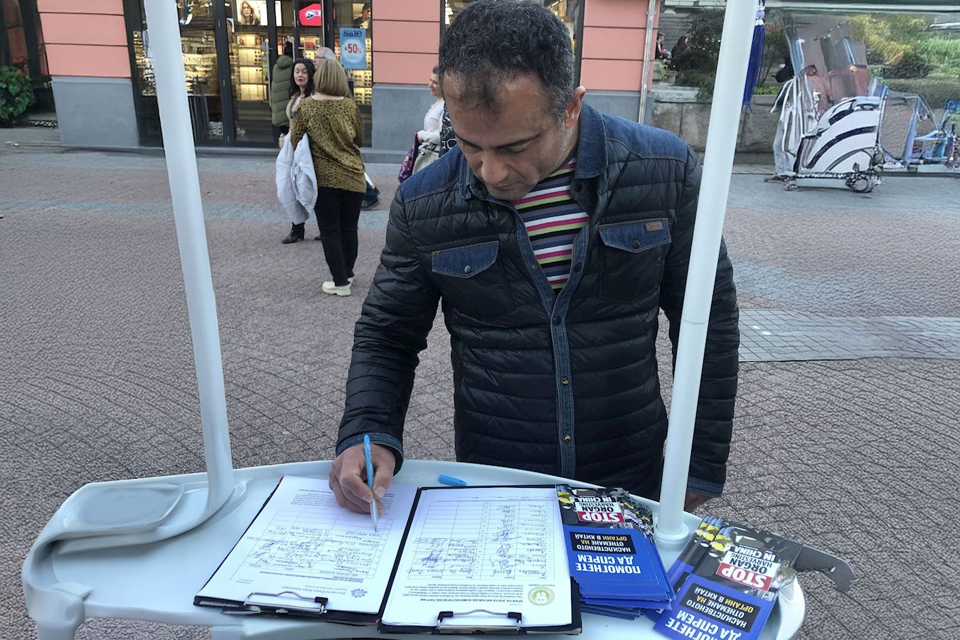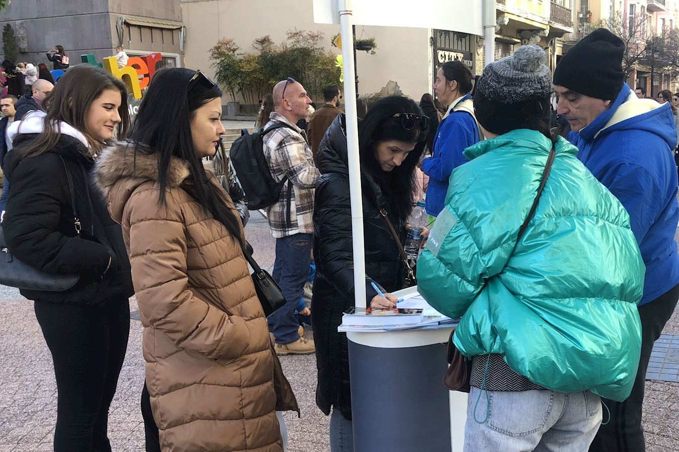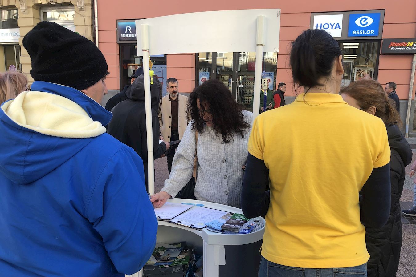 来自保加利亚的城镇奇尔潘(Chirpan)的一位名叫迪诺唷(Dinyo)的男士坐在展台后面仔细阅读了整本真相小册子,然后在请愿书上签名。一位女学员问他是不是本地人,迪诺唷恰巧来自于这位学员的家乡,学员表示正打算回家乡举办讲真相和征签活动。迪诺唷对这一请愿活动的严肃性和独特性深感触动,他和这位学员互留了联络方式,因为他打算在这位学员回家乡办活动时带上他的朋友和同事也在请愿书上签名。