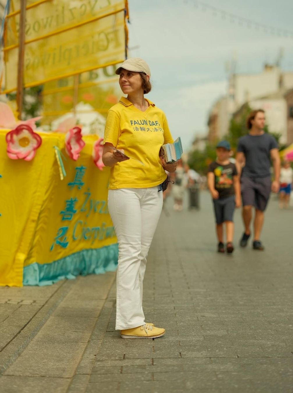 ![]() 图1:托马什(左一)在弘法活动中和路人讲真相 |
