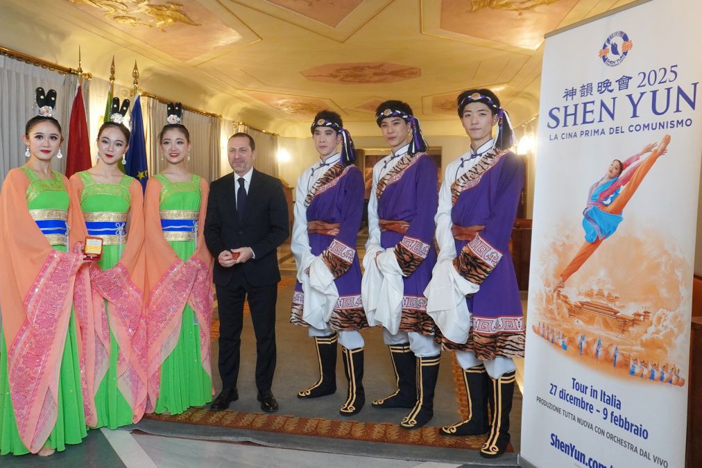 二零二五年一月三十一日,意大利参议院欧盟事务主席、前外交部长朱利奥‧泰尔齐‧迪‧圣阿加塔(Giulio Terzi di Sant' Agata)参议员热情接待了神韵纽约艺术团,并邀请艺术家们参观了具有悠久历史的参议院。