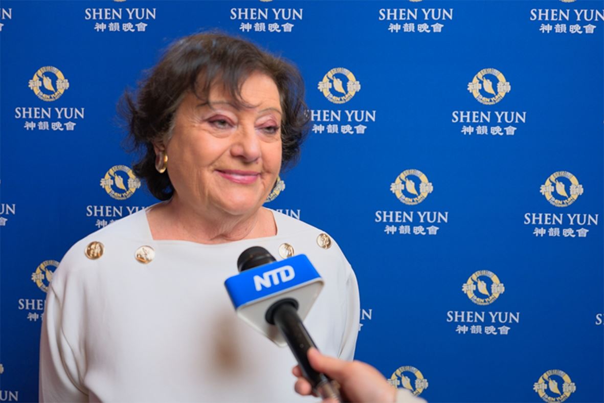 她对神韵演出的艺术造诣也赞不绝口,“这是一场非常壮观的演出,舞蹈演员的轻盈、柔韧和高超技术令人惊叹。他们的专业精神完美地服务于对传统的传递。”