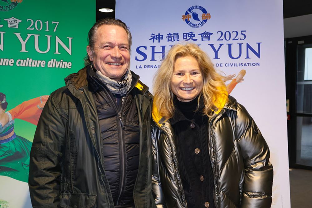 二零二五年一月二十八日下午,美国神韵新纪元艺术团在法国波尔多阿凯亚剧场(Arkea Arena)进行的第五场演出大爆满。尽管天气寒冷、风雨交加,省议员兼库洛尔(Coulaures)镇镇长科琳·杜克罗克(Corinne Ducrocq)女士与先生伊夫·杜克罗克(Yves Ducrocq)从百公里外驱车而来,专程观赏了神韵演出。