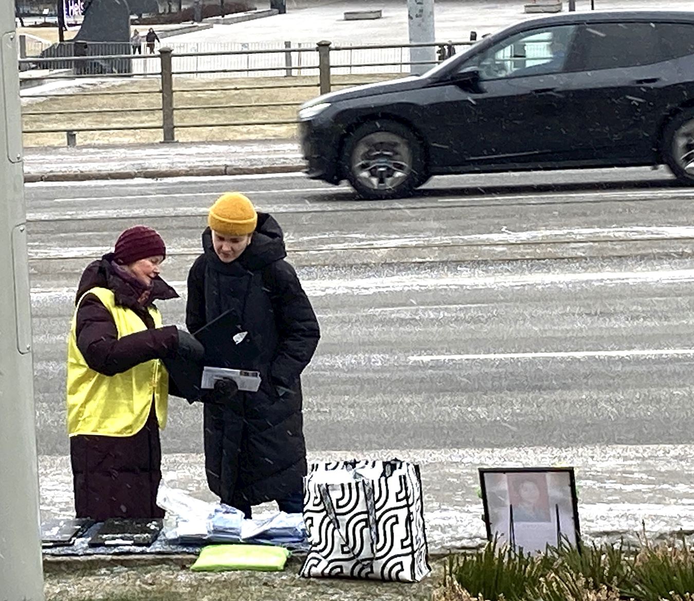 一位男士从议会大厦前经过,当听到“活摘器官”一词时,他顿时愣住。学员一度以为他听不懂芬兰语,但他解释说,“我只是被这个消息震惊到了。”学员告诉他,正在炼功的学员中,有人曾多次遭到警察骚扰,有的甚至失去丈夫和母亲。他感叹道,在芬兰自由的环境中,难以想象中国发生的迫害。他说回去会好好认真阅读这些资料。