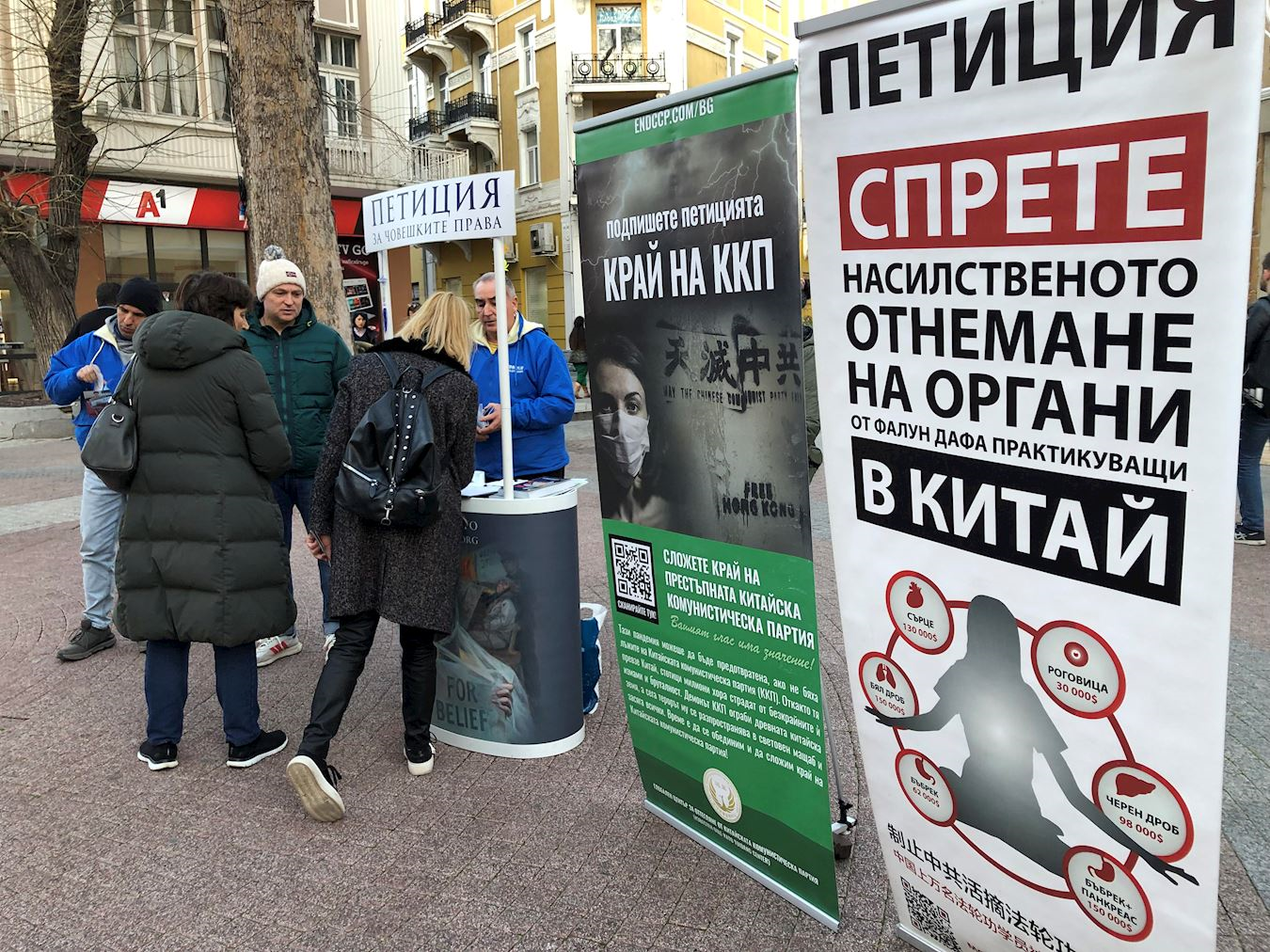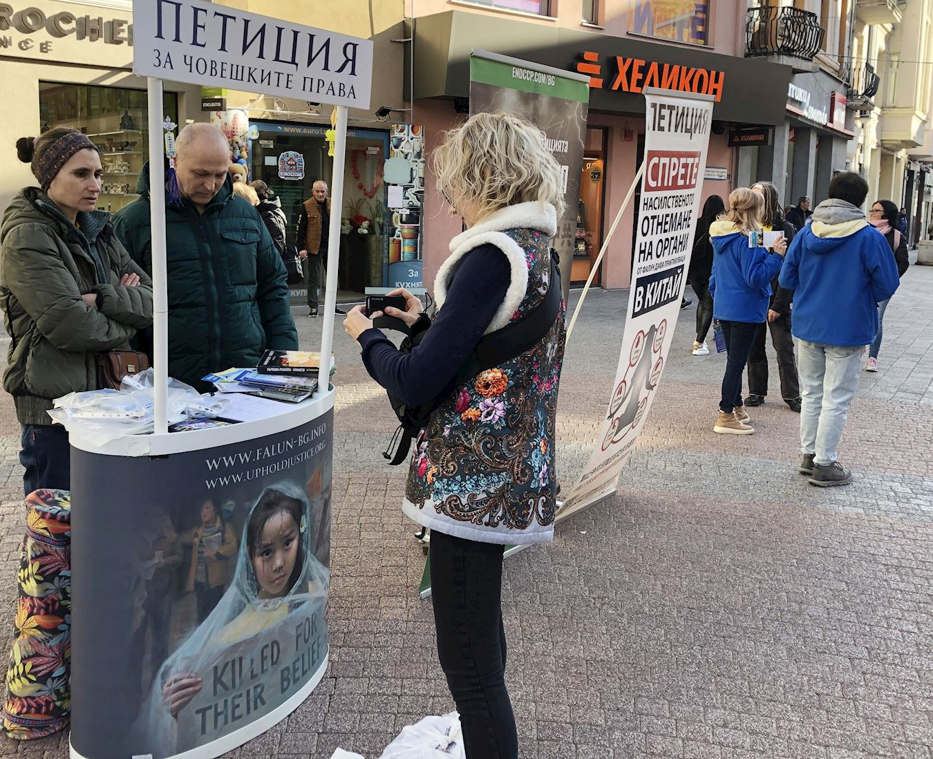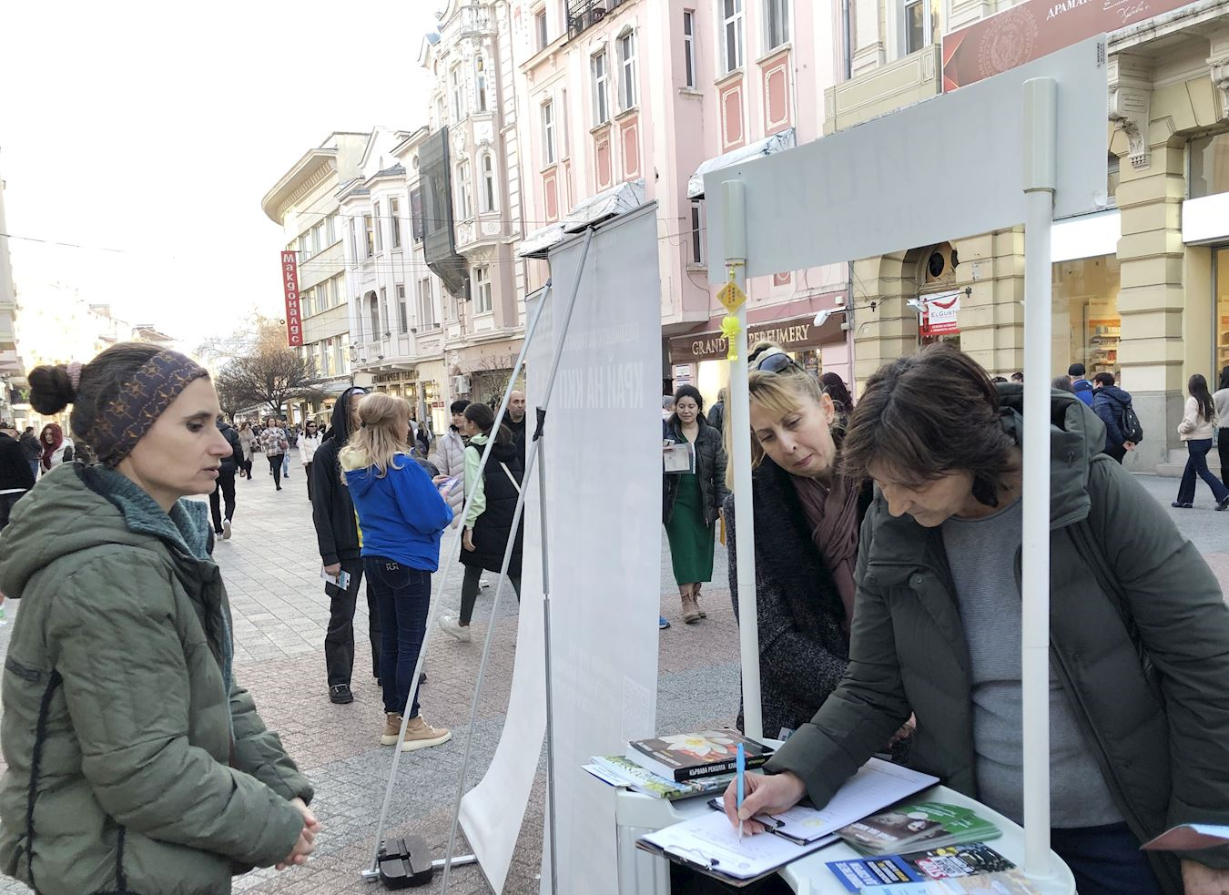 在普罗夫迪夫,法轮功学员来到热闹的步行街卡梅尼察的楼梯前,他们设置了真相亭,分发传单、展示横幅,并在两份制止迫害的请愿书上收集签名,一份是谴责中共侵犯人权的请愿书;另一份是由反对活摘器官医生组织(DAFOH)发起的、呼吁保加利亚政府不要让政府、民间实体和公民直接或间接参与中共对法轮大法修炼者的迫害和活摘器官的请愿书。