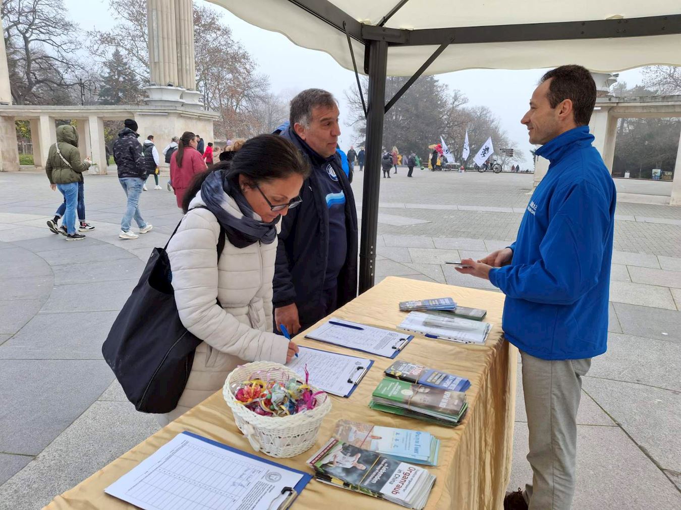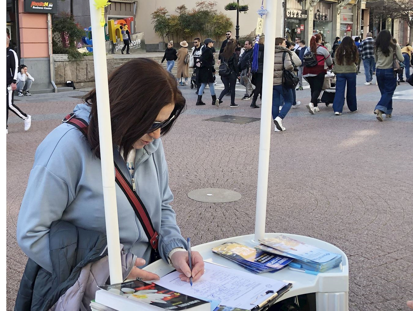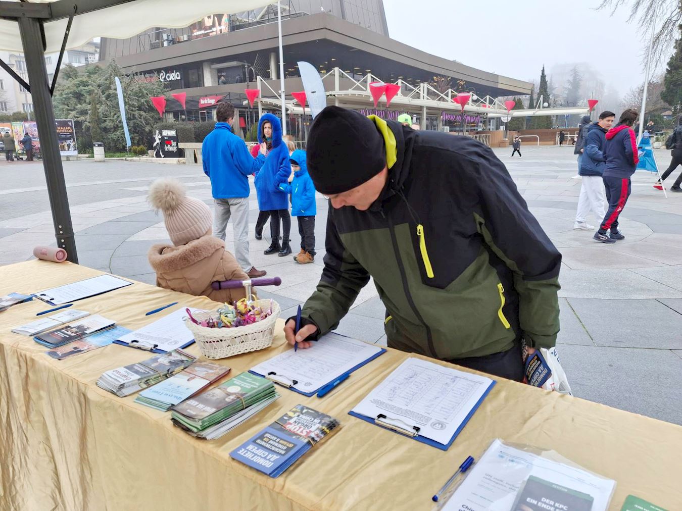 在普罗夫迪夫,法轮功学员来到热闹的步行街卡梅尼察的楼梯前,他们设置了真相亭,分发传单、展示横幅,并在两份制止迫害的请愿书上收集签名,一份是谴责中共侵犯人权的请愿书;另一份是由反对活摘器官医生组织(DAFOH)发起的、呼吁保加利亚政府不要让政府、民间实体和公民直接或间接参与中共对法轮大法修炼者的迫害和活摘器官的请愿书。