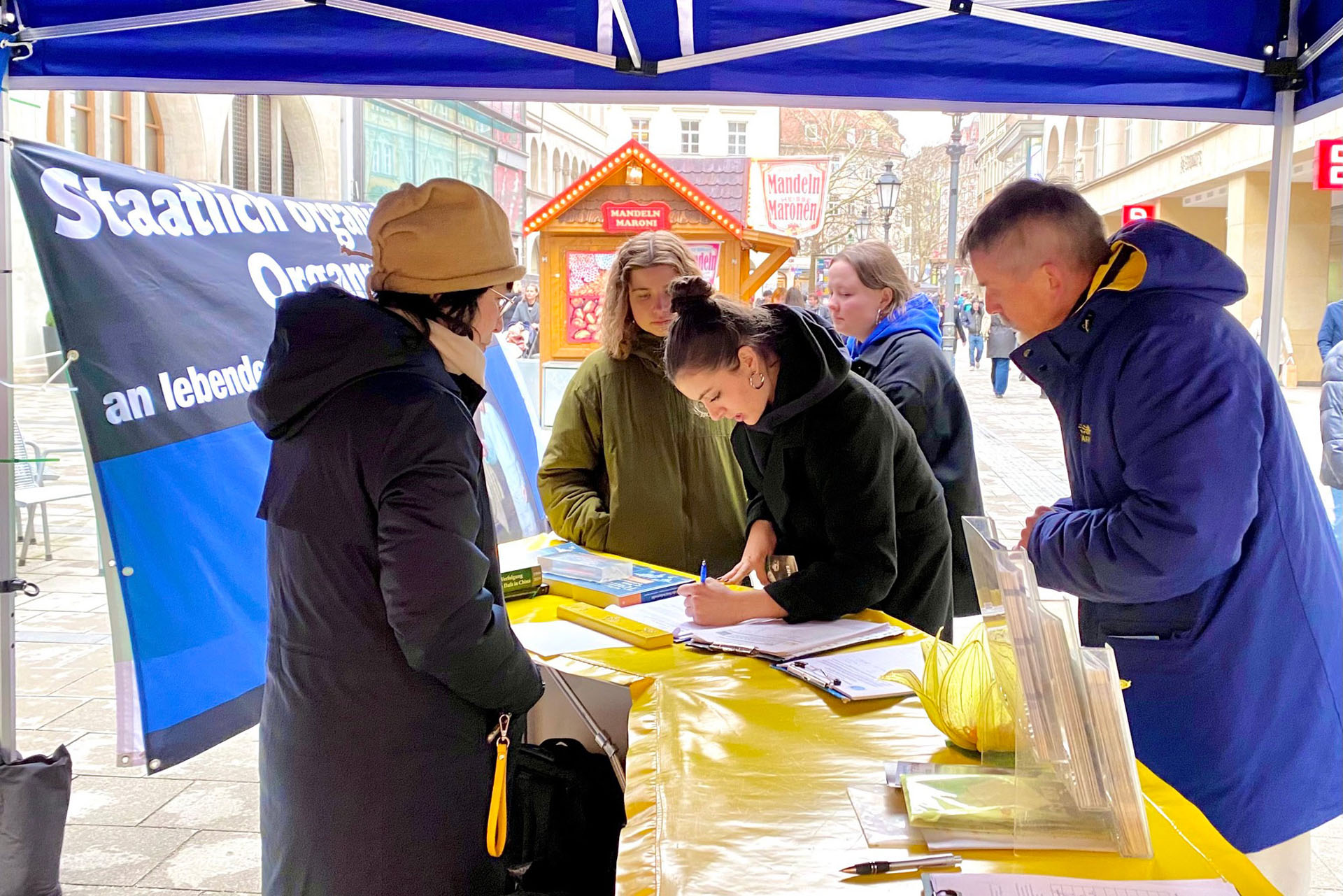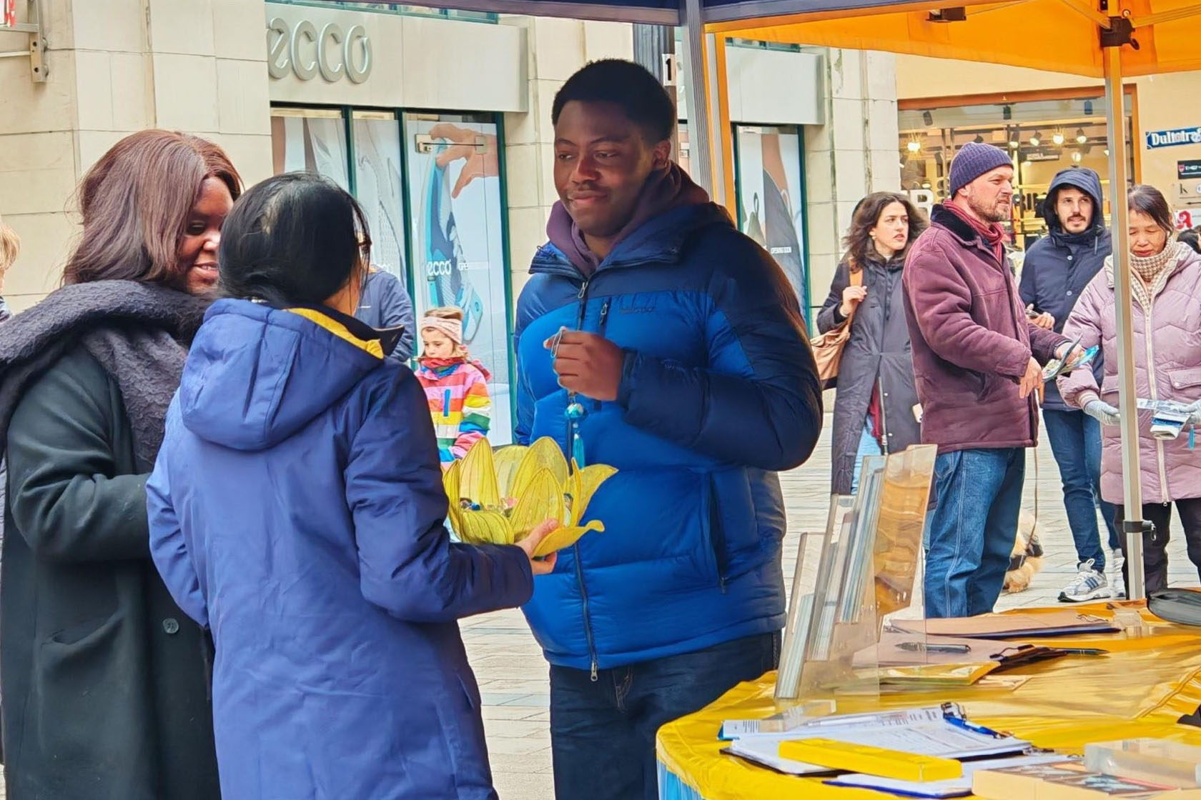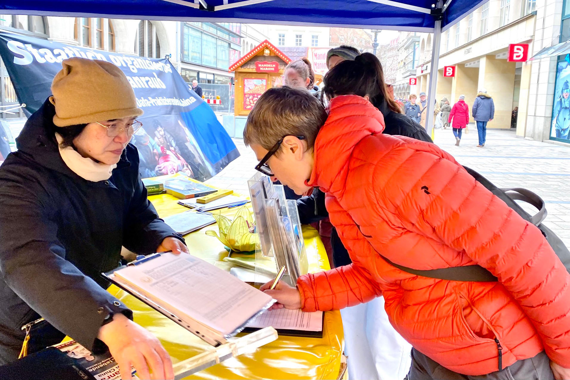 ![]() 图1~2:二零二五年三月十五日,德国法轮功学员在慕尼黑市中心步行街森德林格大街举办活动,展示法轮功的美好,同时揭露中共迫害恶行,当地民众积极声援法轮功学员反迫害。 |