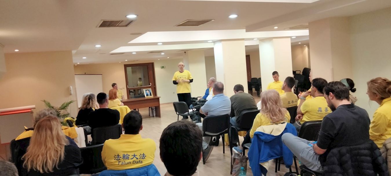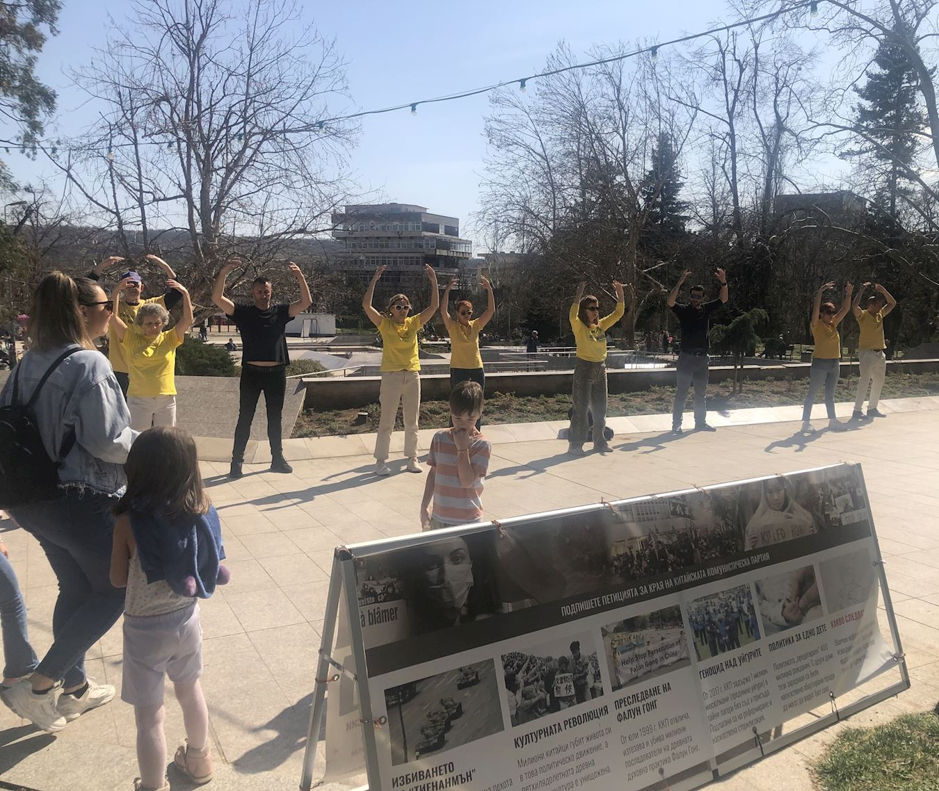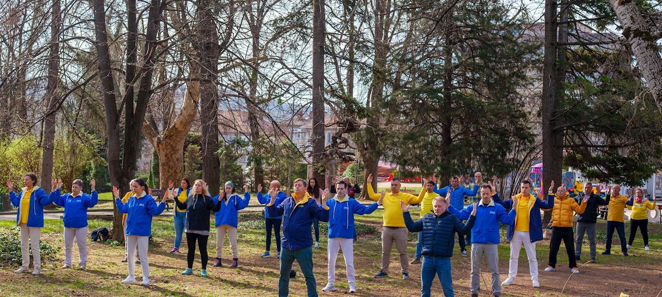法轮功学员的信息台位于市中心马尔诺波尔公园(Marno Pole)的主步道两侧,这里是市民休闲娱乐的热门场所。当天天气温暖晴朗,学员向路人分发传单、演示功法,并讲述中共对法轮功长达二十六年的迫害。人们在活动中签署两份请愿书:一份是反对中共迫害法轮功,另一份是呼吁政府阻止保加利亚的实体参与中共针对法轮功学员的强摘器官的罪行。
