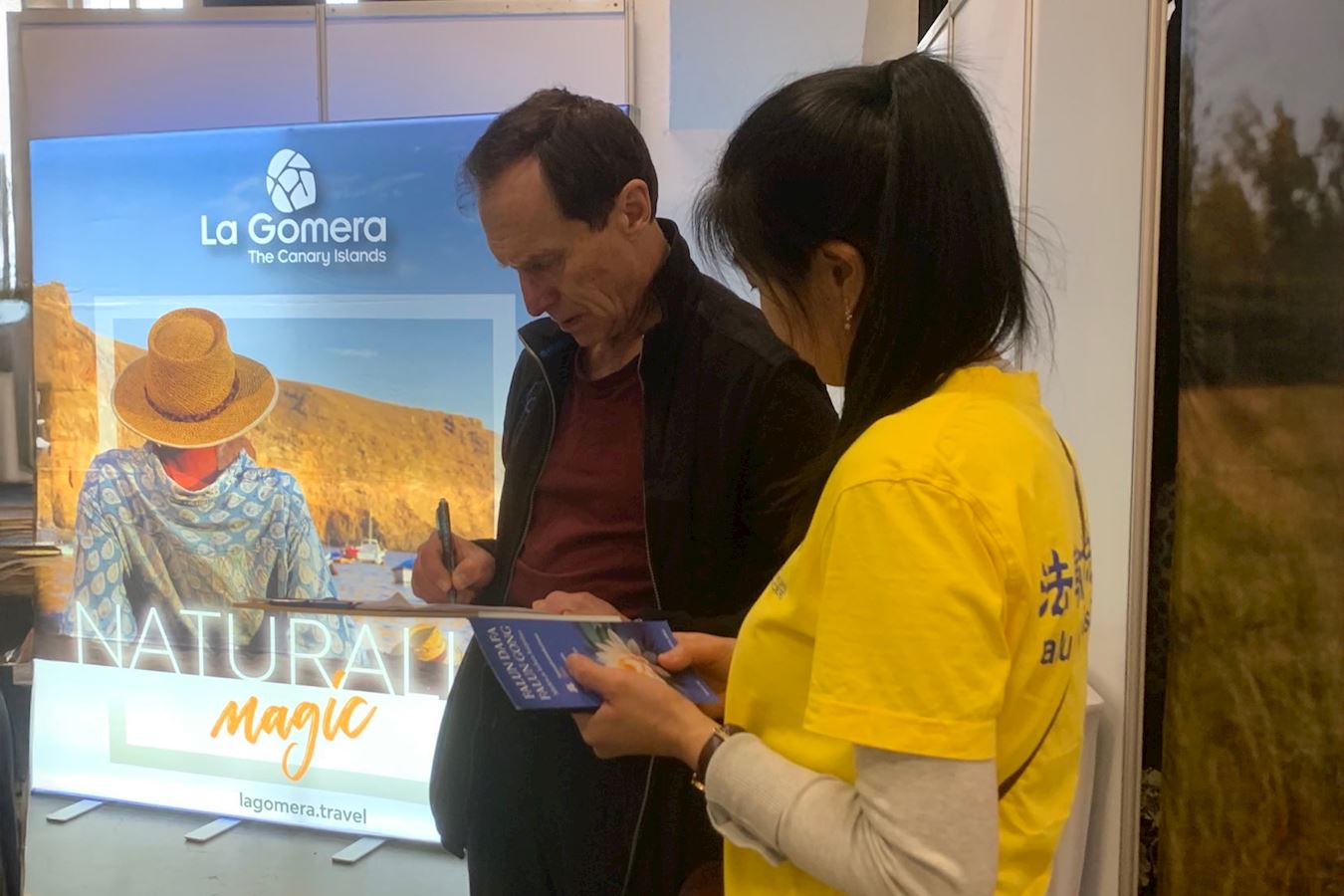 瑜伽节的工作人员尤纳斯(Joonas)签名后对学员说:“我知道中共把人关进监狱,收集他们的信息,並隨時摘取他们的器官。这种不人道的生意居然在中国发生,把别人的器官拿走,非常没有人性。”