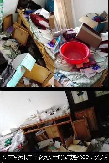 二零一六年四月二十二日早上,田彩英在家里突遭绑架。当时,田家楼梯有蹲坑的,后窗对面阳台隐藏着录像的,楼外停着八、九辆车。大约八点多钟警察撬门,闯入三、四人,自称是新抚区分局的说;现在有一个杀人的案子,在排查……说话间闯入十几人,其中有市国保支队长彭越,及永安派出所警察等。