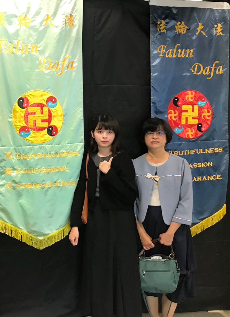 ![]() 图1:子瑀和母亲一起参加法轮大法修炼心得交流会。 |