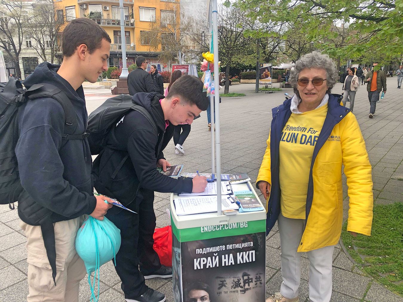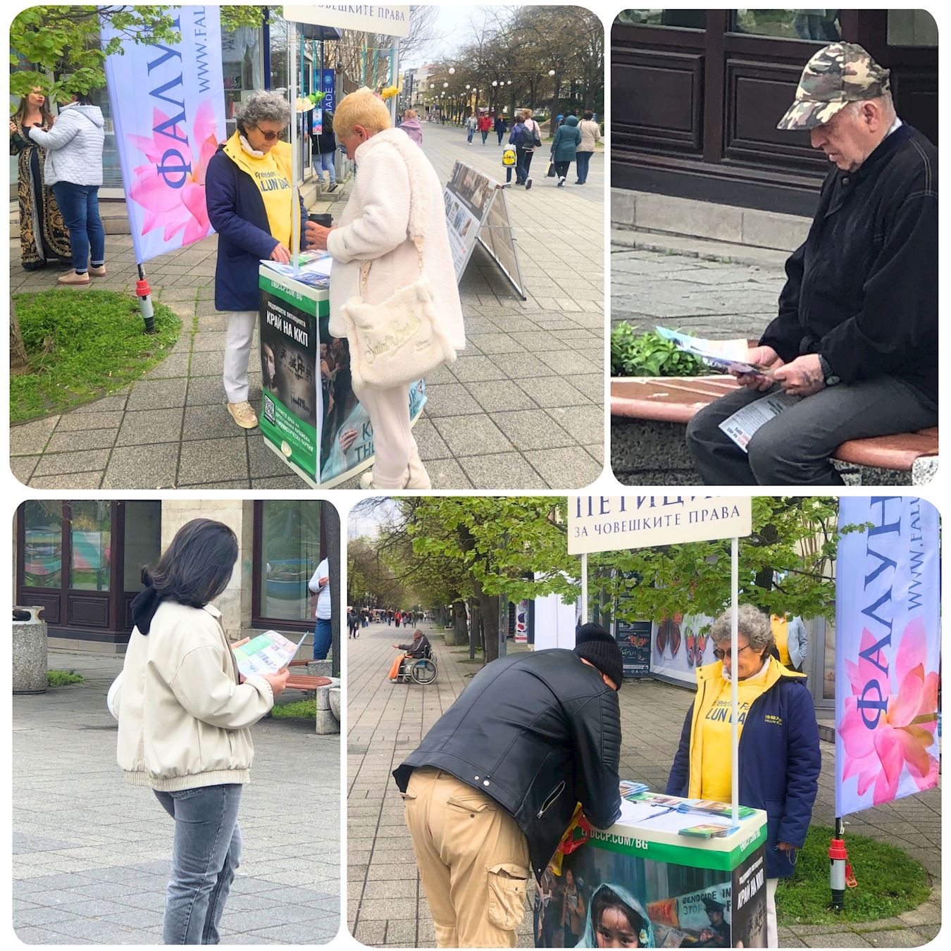四月五日,学员来到黑海小镇布尔加斯,在靠近市政厅和自由广场的地方设立了真相展板和横幅,他们与路人交谈,分发传单,并征集在两份请愿书上的签名。一份请愿书反对中共迫害法轮功,另一份是呼吁政府防止保加利亚人在不知情的情况下,参与了中共针对法轮功学员的活摘器官的罪行。人们了解真相后,纷纷签名支持反迫害。