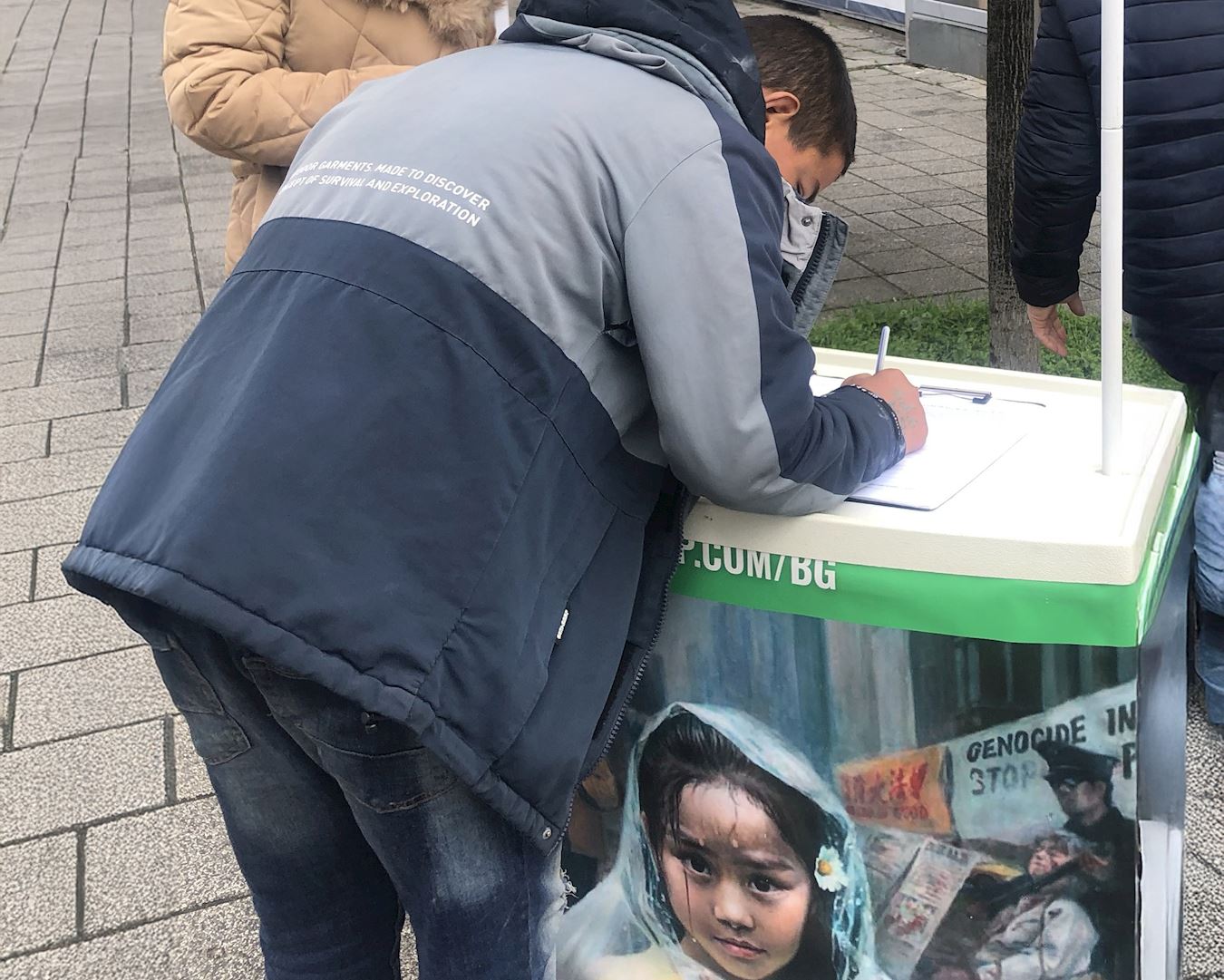 许多路人从远处看到展板后就停下脚步,并欣然在请愿书上签名。