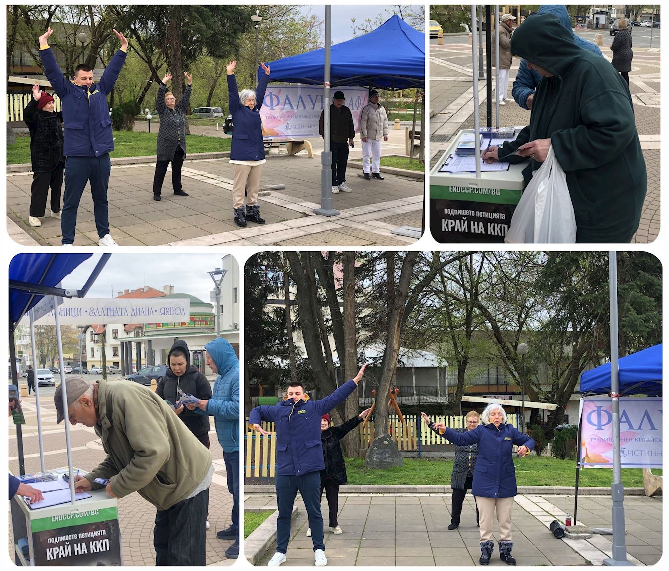 四月六日,星期日,学员们在扬博尔(Yambol)通贾酒店(Tundzha Hotel)、中央城市公园入口和老矿泉浴场之间的中心路口举办了讲真相活动,当天严寒刺骨,但学员仍热情的与路人交谈,分发传单,并征集签名。