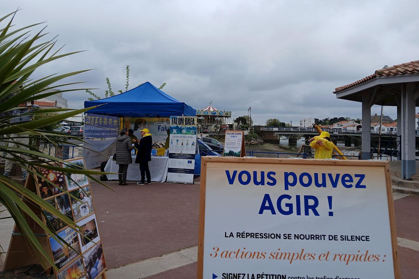 ![]() 图1:二零二五年四月十二日星期六,法轮功学员在法国西部海滨城市圣吉勒-克鲁瓦德维(Saint-Gilles-Croix-de-Vie)举办了法轮功信息日活动。 |