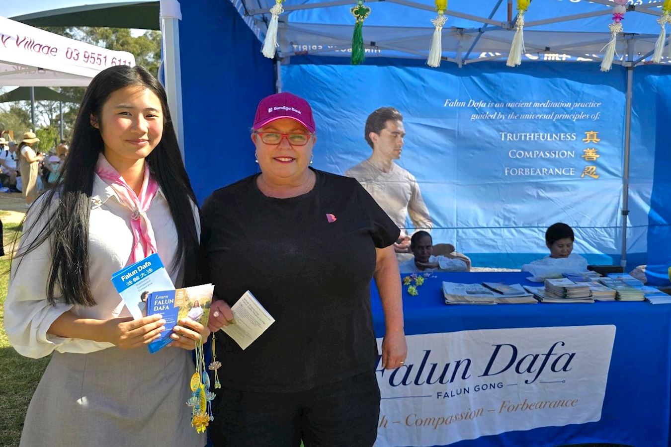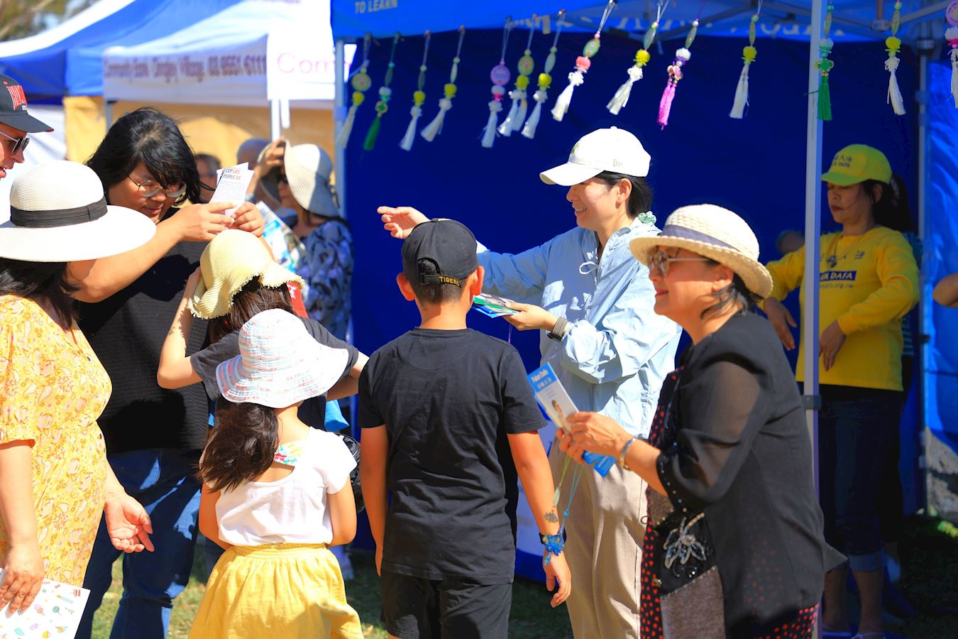 “我时常在思考,孩子们在澳洲能接触到各种文化和思想,如何引导孩子走上正确的人生路,我感到很困难。”她说,“今天孩子们看到法轮功学员漂亮的展位,很感兴趣,很想加入到其中。”