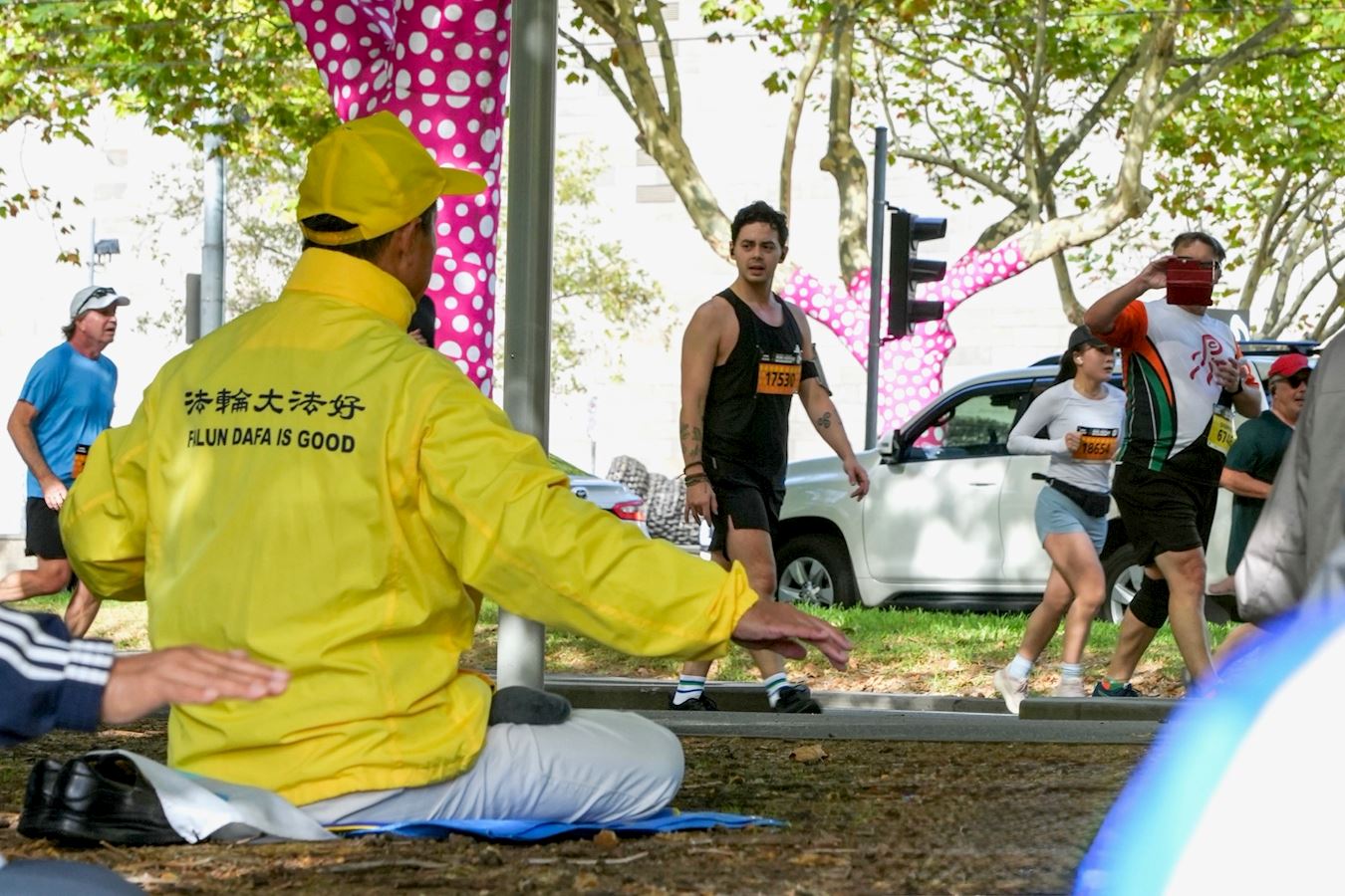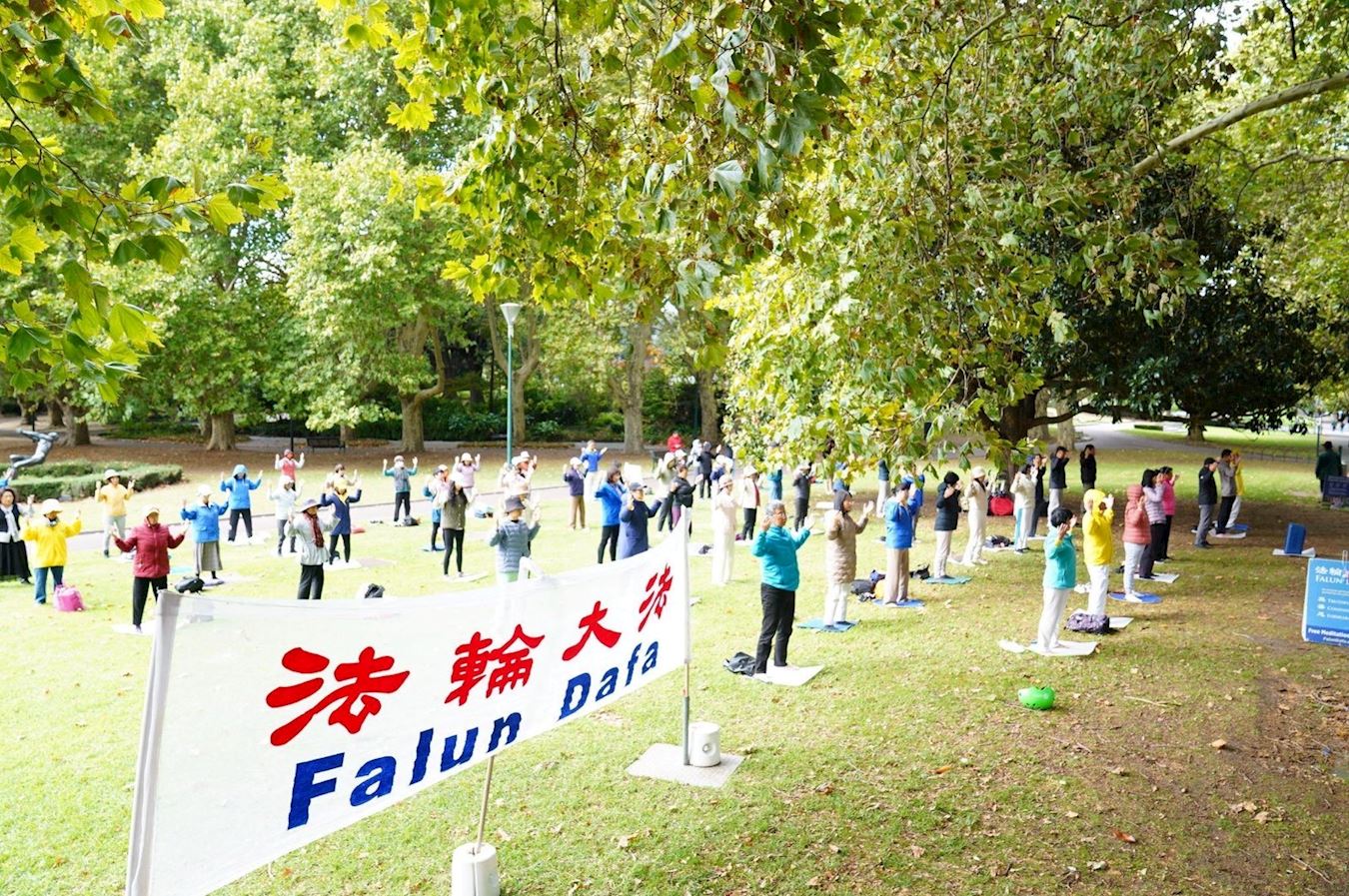 一周前的四月六日,墨尔本市中心举行了名为“为孩子而跑”(Run for the Kids)的慈善长跑。这项维州年度活动吸引了数万名跑步爱好者和慈善支持者。在长跑必经之路上,法轮功学员在维多利亚女王公园(Queen Victoria Gardens)随着音乐集体炼功,在南半球秋高气爽的清晨,这一动一静的画面对比,宁静而富有生命力。