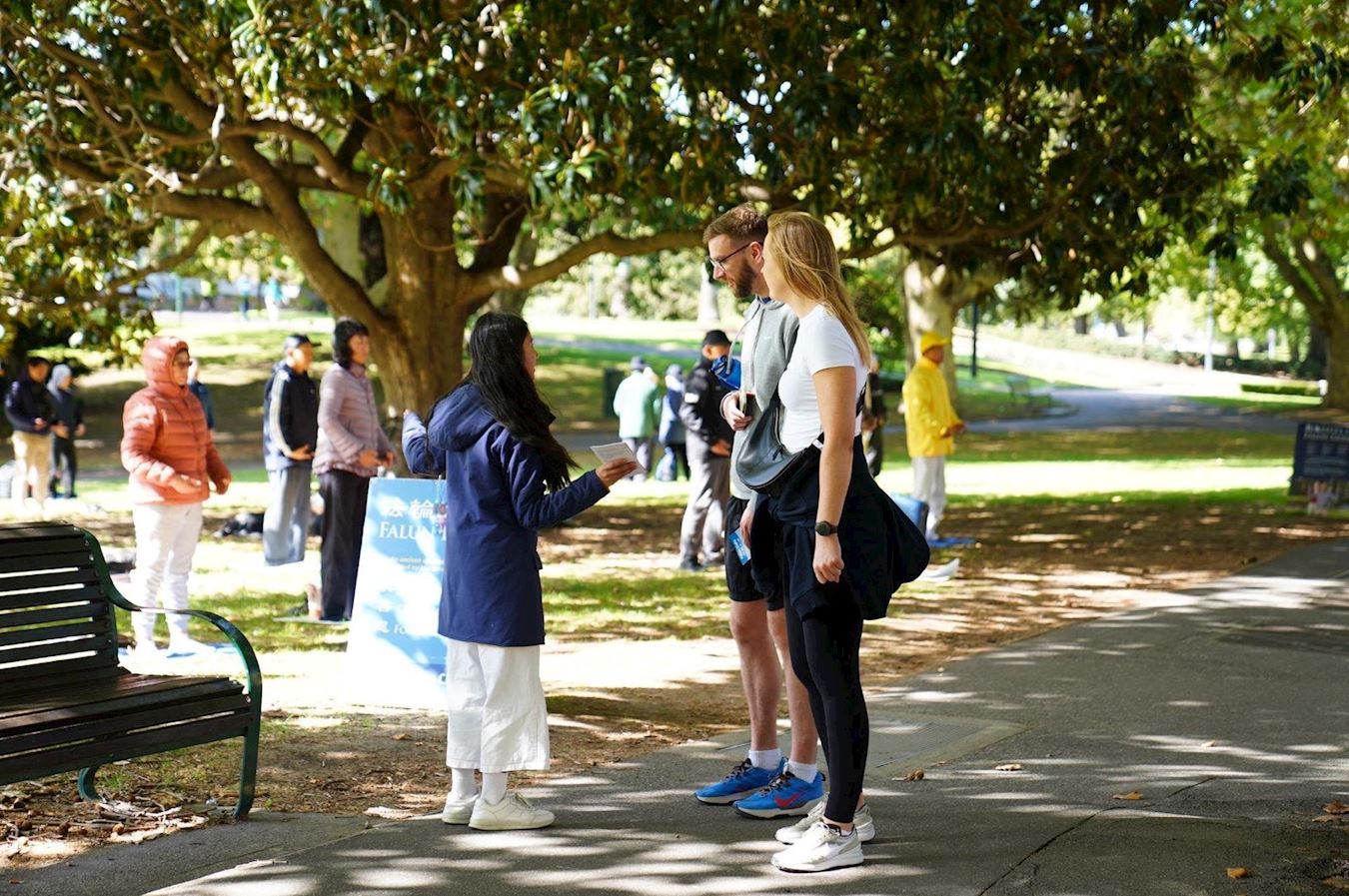 学员们无私地在社区中传播真、善、忍普世价值,市民和游客们感佩之余,纷纷表示这些传统理念是当今社会所需,不少人希望继续了解,并询问法轮功炼功点的详情。