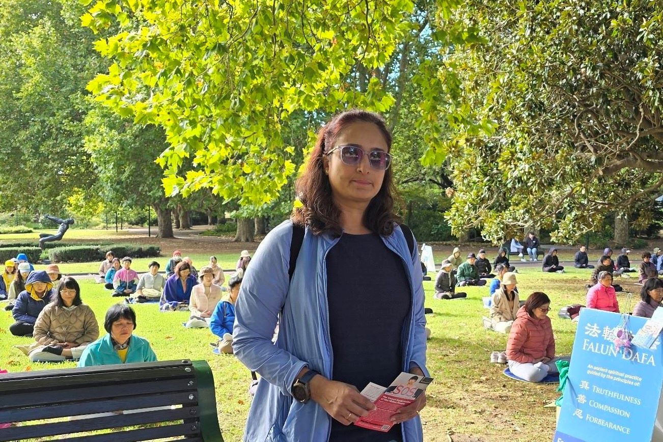 卡莎玛‧戴夫(Kshama Dave)是一名金融领域的项目经理,看到法轮功学员集体炼功的场面,她表示,感受到了一种“慈悲”的能量。