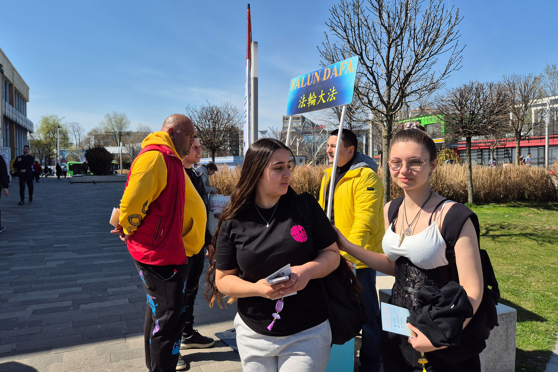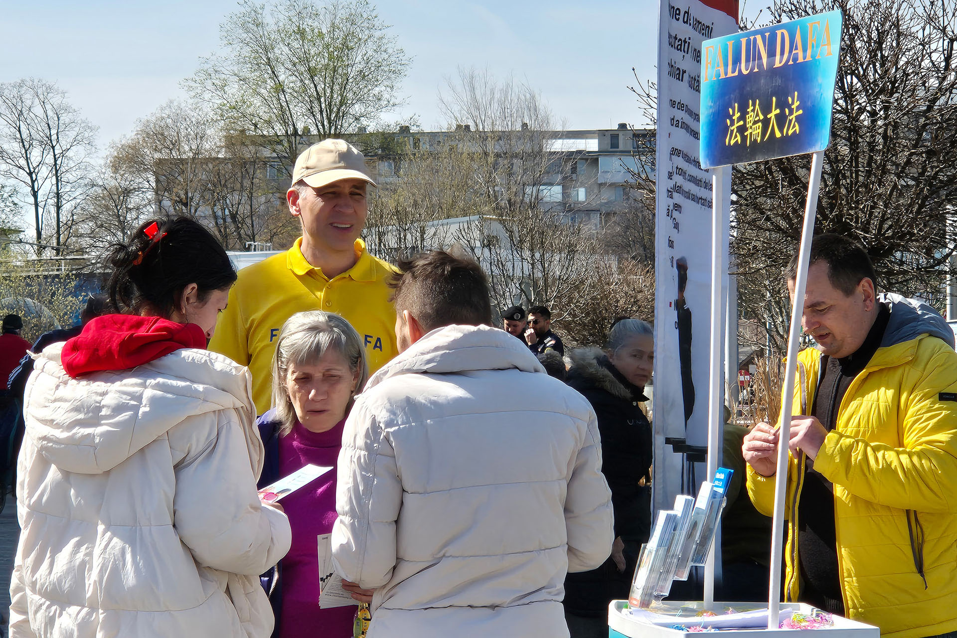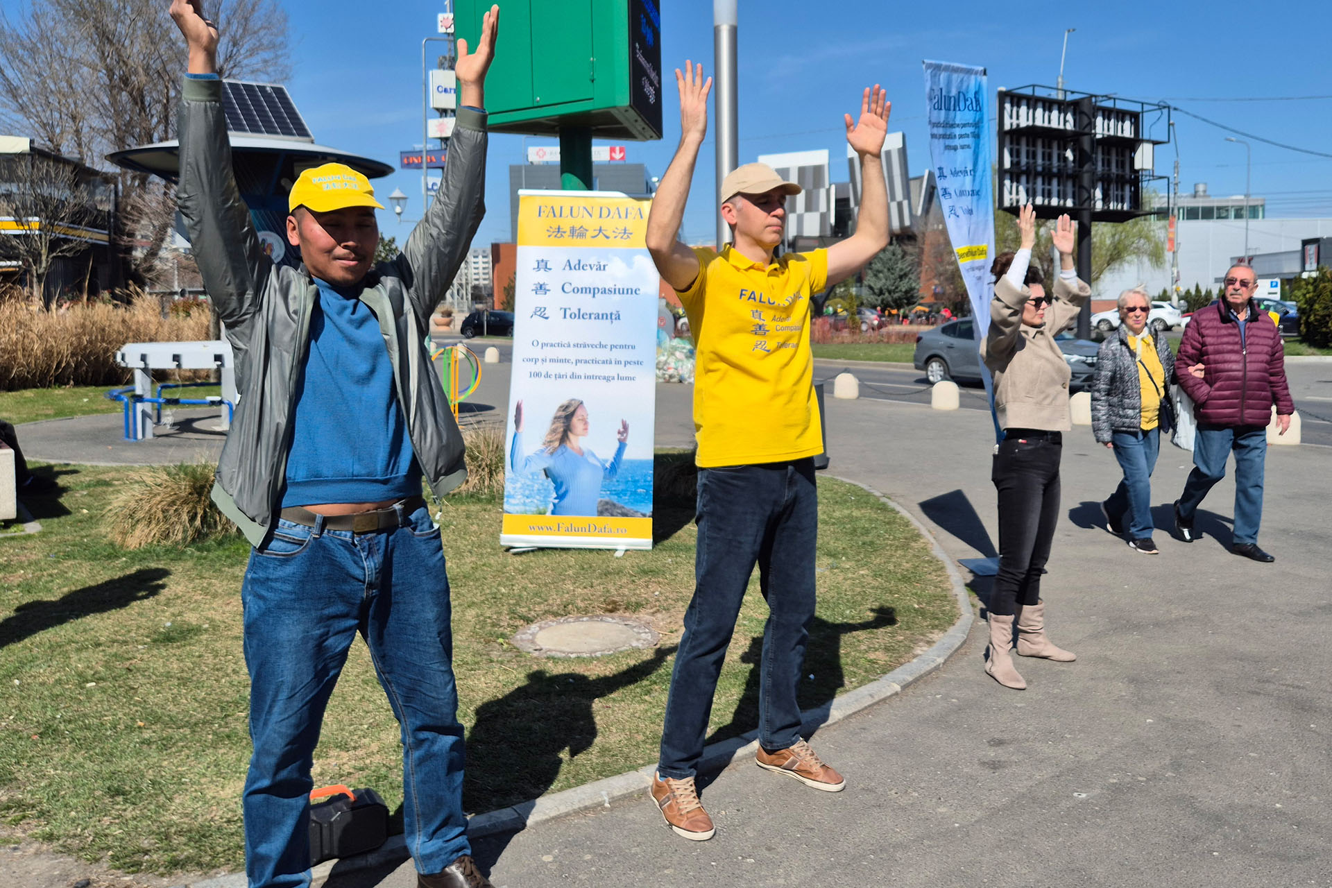 ![]() 图1~2:二零二五年三月二十二日,法轮功学员在布加勒斯特展示五套功法,并在制止迫害的请愿书上征集签名。 |