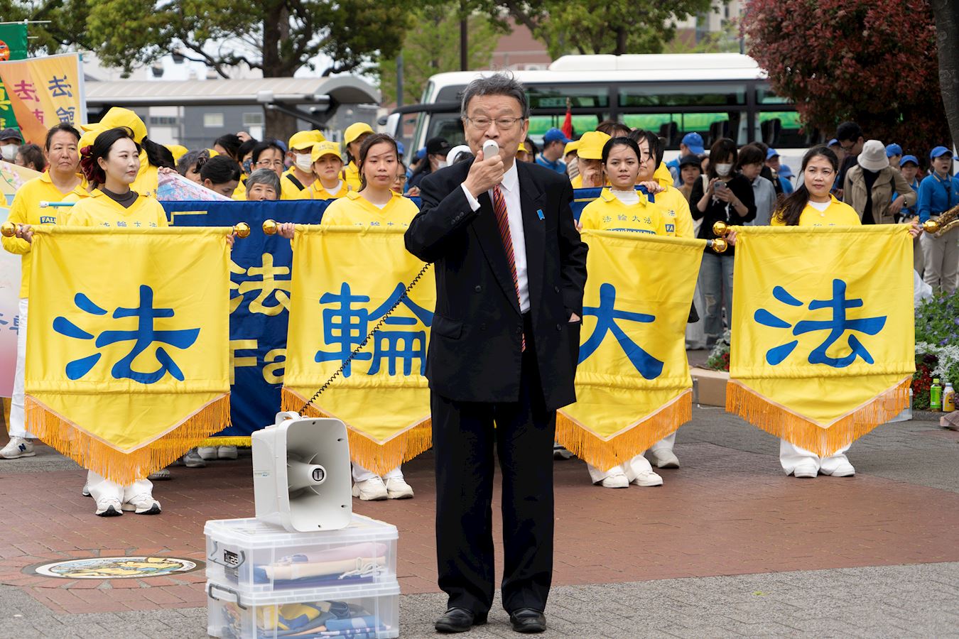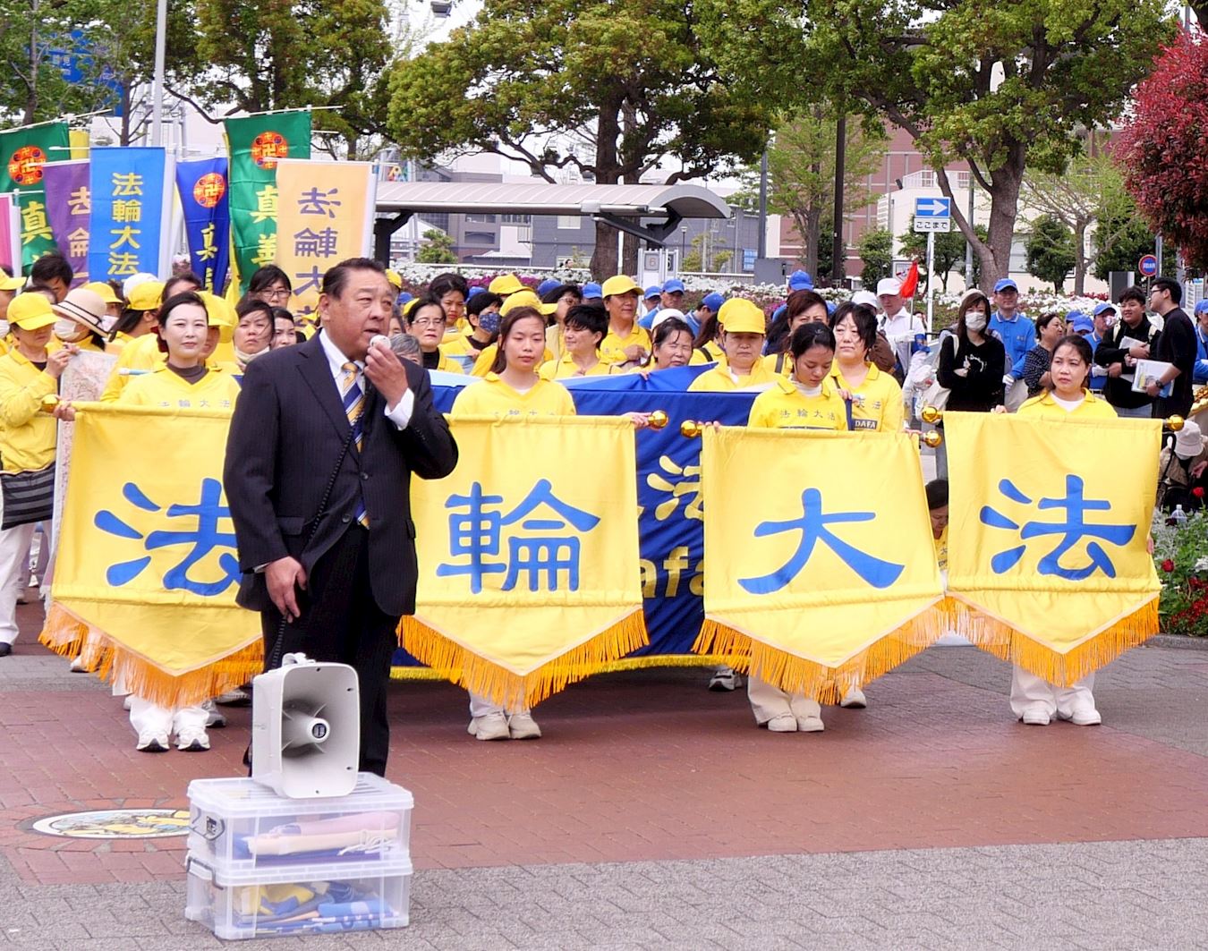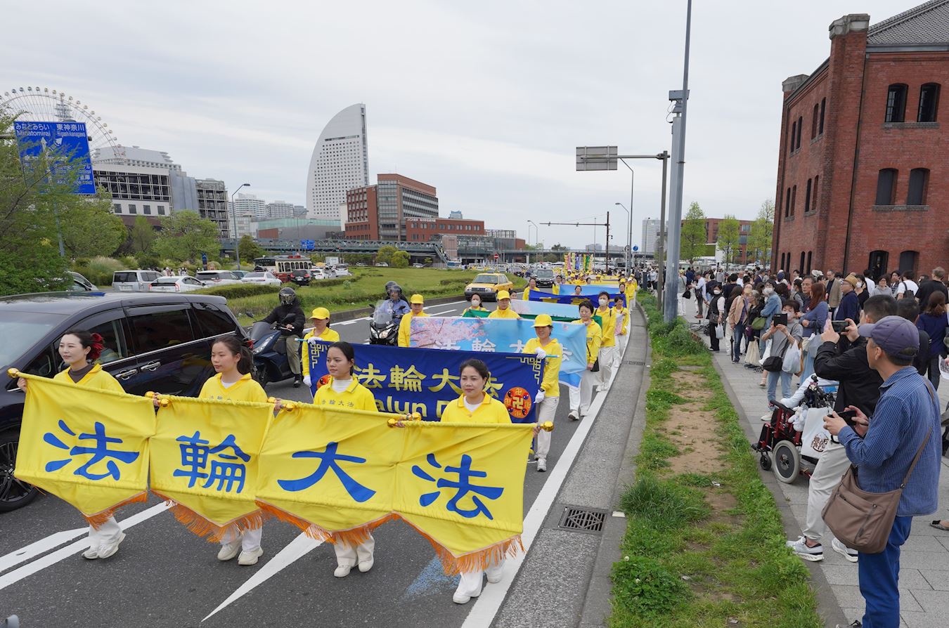 本次集会上,多位日本议员、大陆维权人士,来到现场发表演讲、录音发言方式表达对法轮功的支持,并谴责中共活摘法轮功学员器官和所犯下的反人类罪行。反迫害集会结束后,下午一点半, 浩浩荡荡的游行队伍从樱木町站前广场出发,途径红砖仓库、中华街等观光胜地,吸引了大量的民众驻足观看。