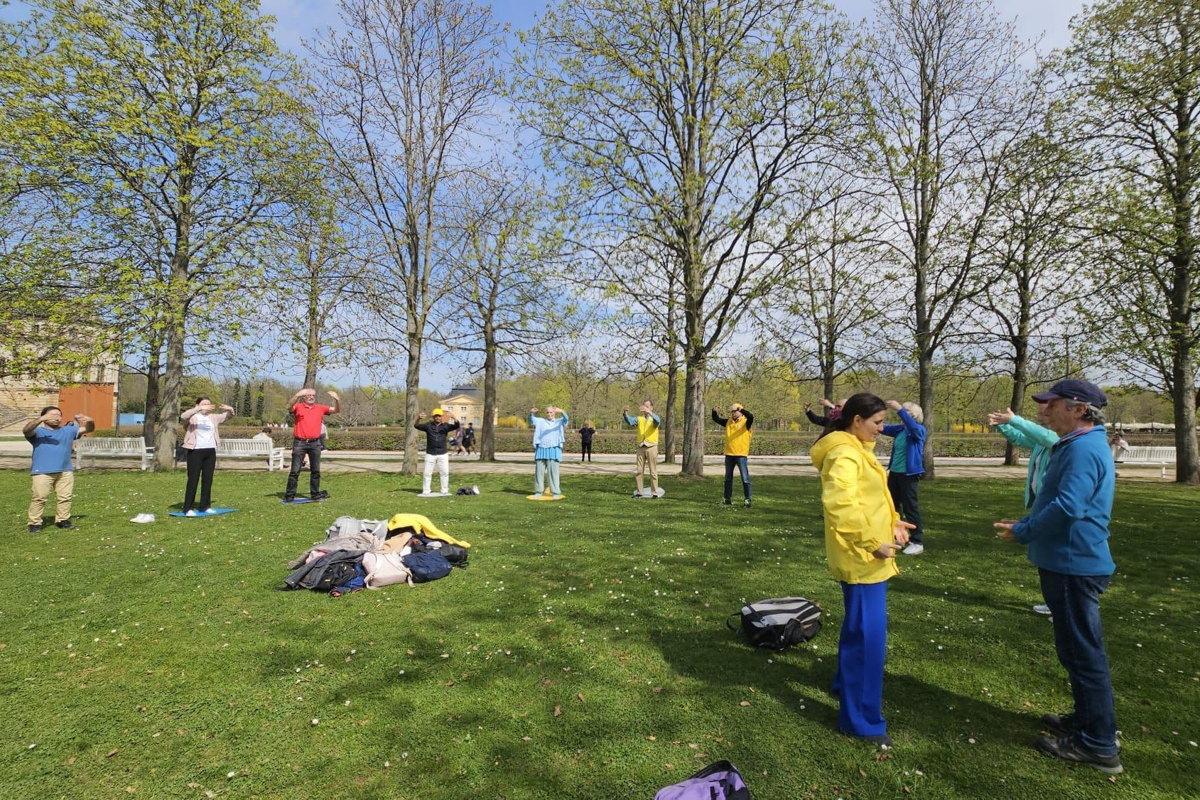 在与学员的交谈中,他们询问了关于内心发展和身心修炼的问题。第二天,他们就有机会在德累斯顿公园的当地炼功点免费学功。