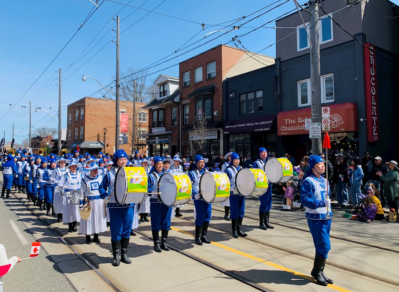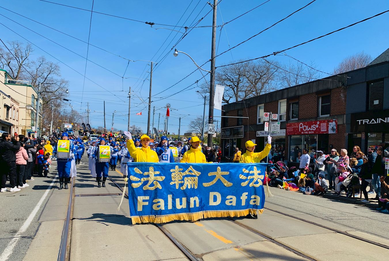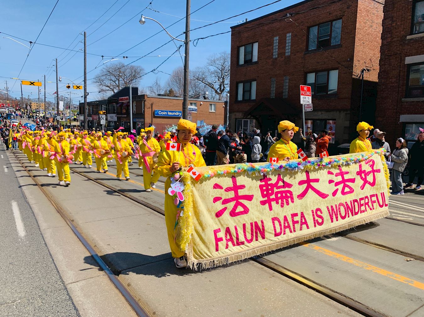 ![]() 图1~3:法轮功学员组成的天国乐团和腰鼓队受邀参加多伦多复活节游行 |