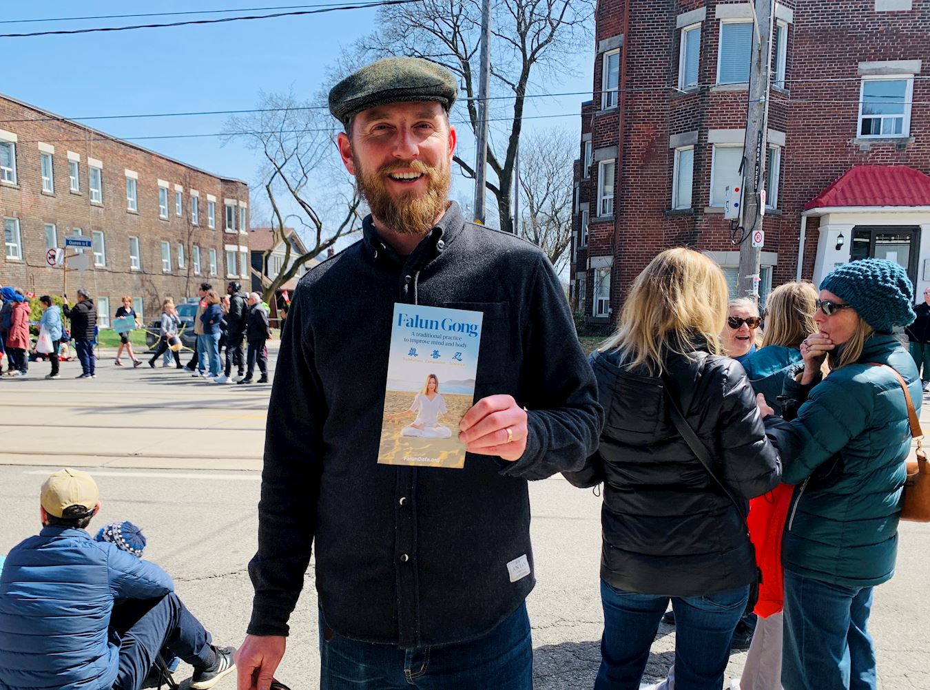 ![]() 图4:保罗认为天国乐团为复活节游行注入活力,并认同法轮大法的真、善、忍理念 |