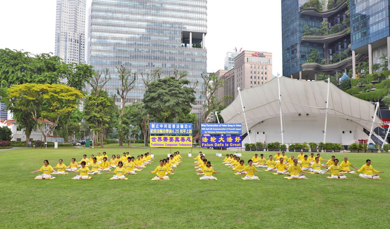 新加坡法轮佛学会代表黄女士向公众介绍了事件缘起,和随后升级的残酷迫害。每一年,世界各地的法轮功学员在此刻,都会以各种方式纪念“四·二五”壮举,传承和平理性反迫害精神,也鼓舞各界支持善良,谴责中共罪恶。