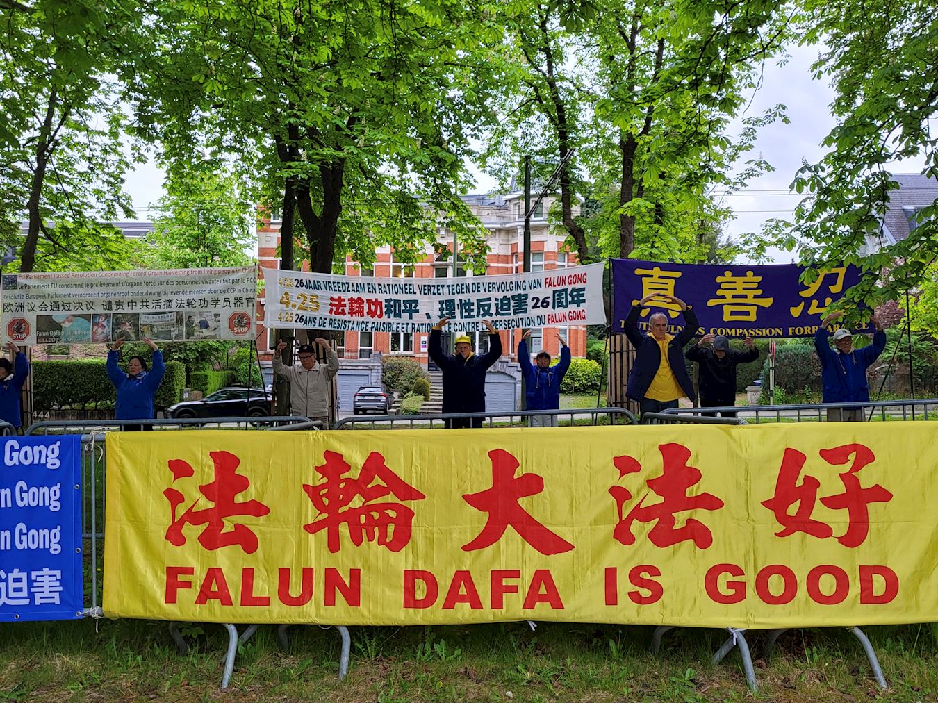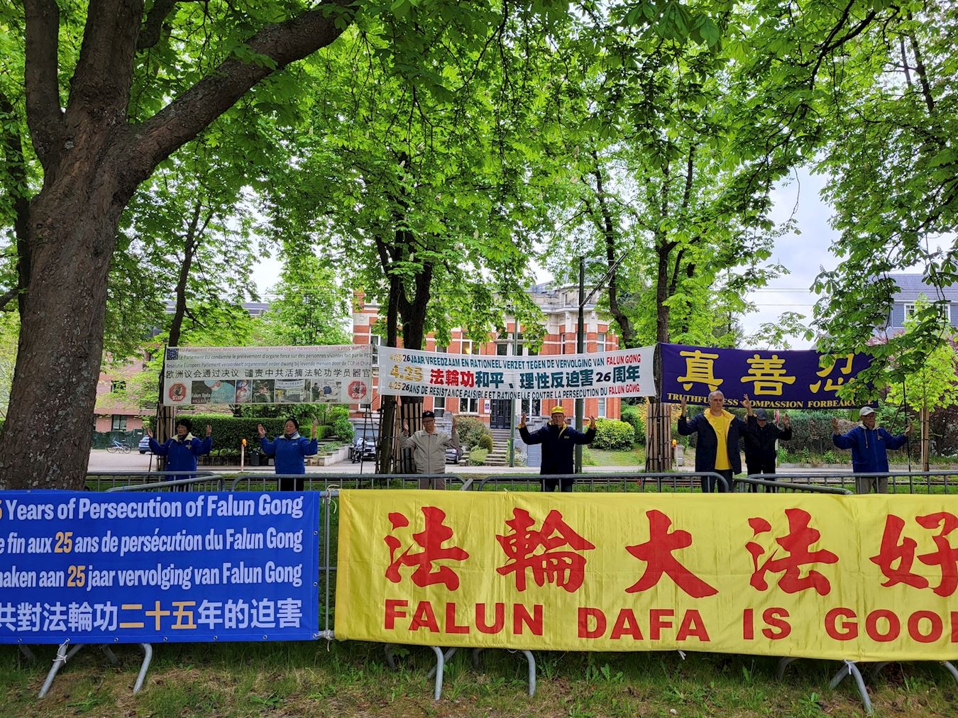 ![]() 图1~2:部分比利时法轮功学员在中使馆前纪念法轮功“四·二五”和平、理性维护信仰自由 |
