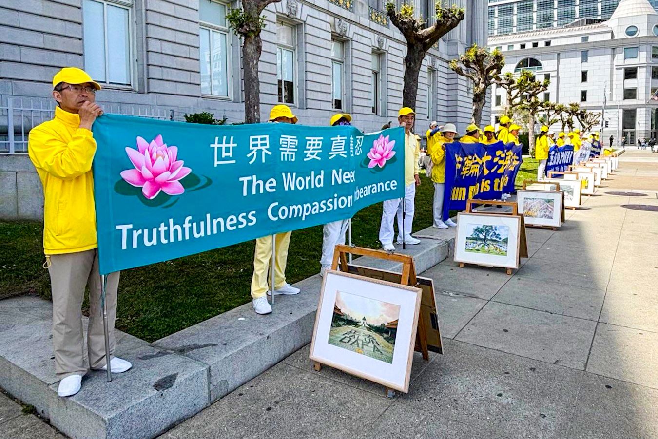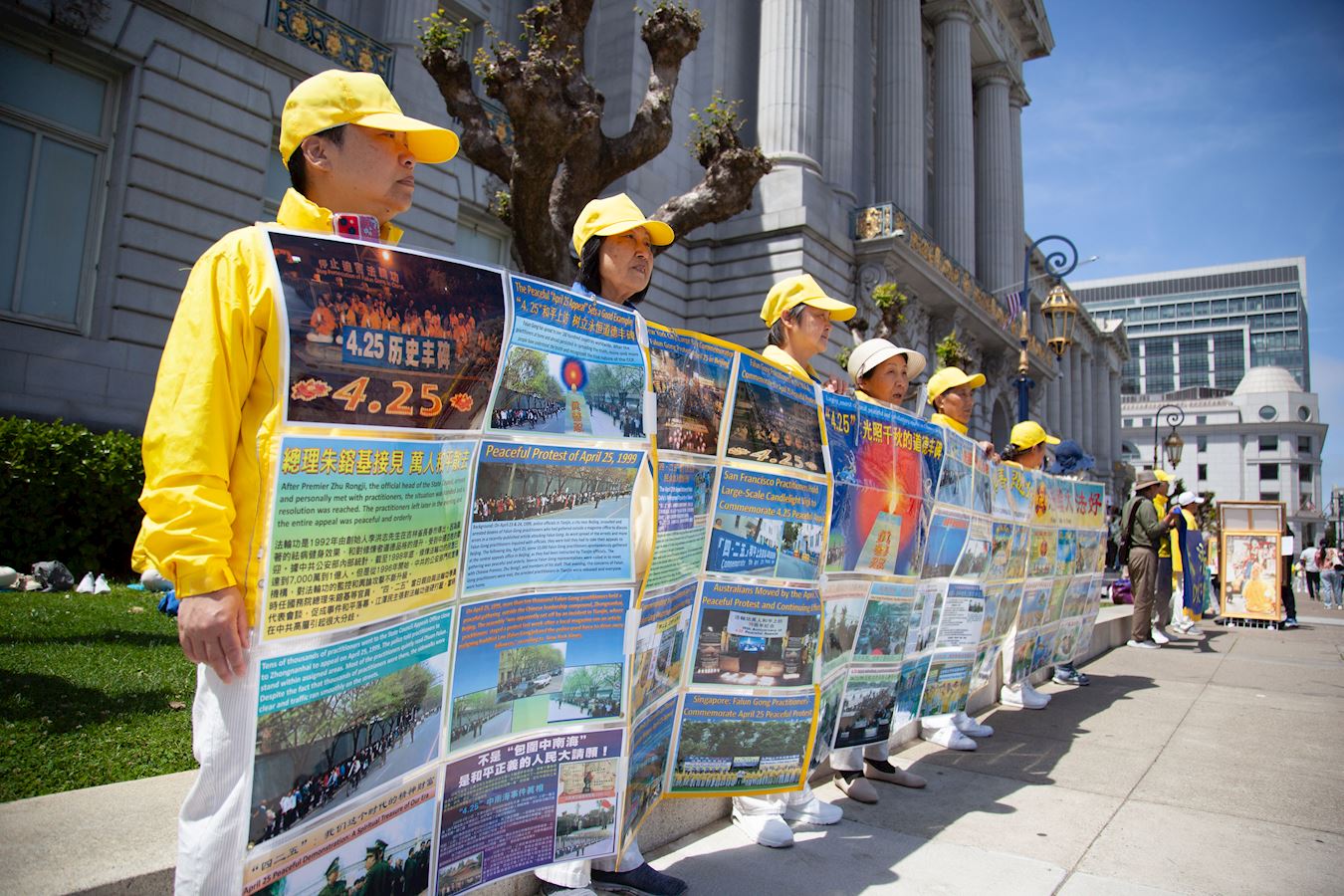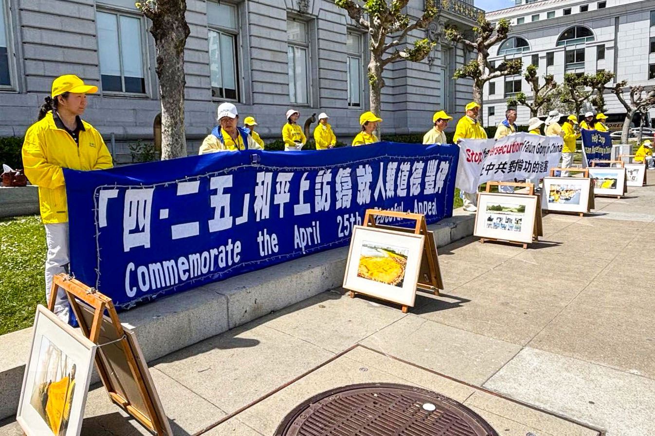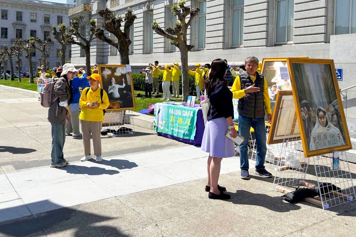 ![]() 图1~5:二零二五年四月二十二日,旧金山湾区部分法轮功学员在旧金山市政府大楼前举办真相图片展。 |