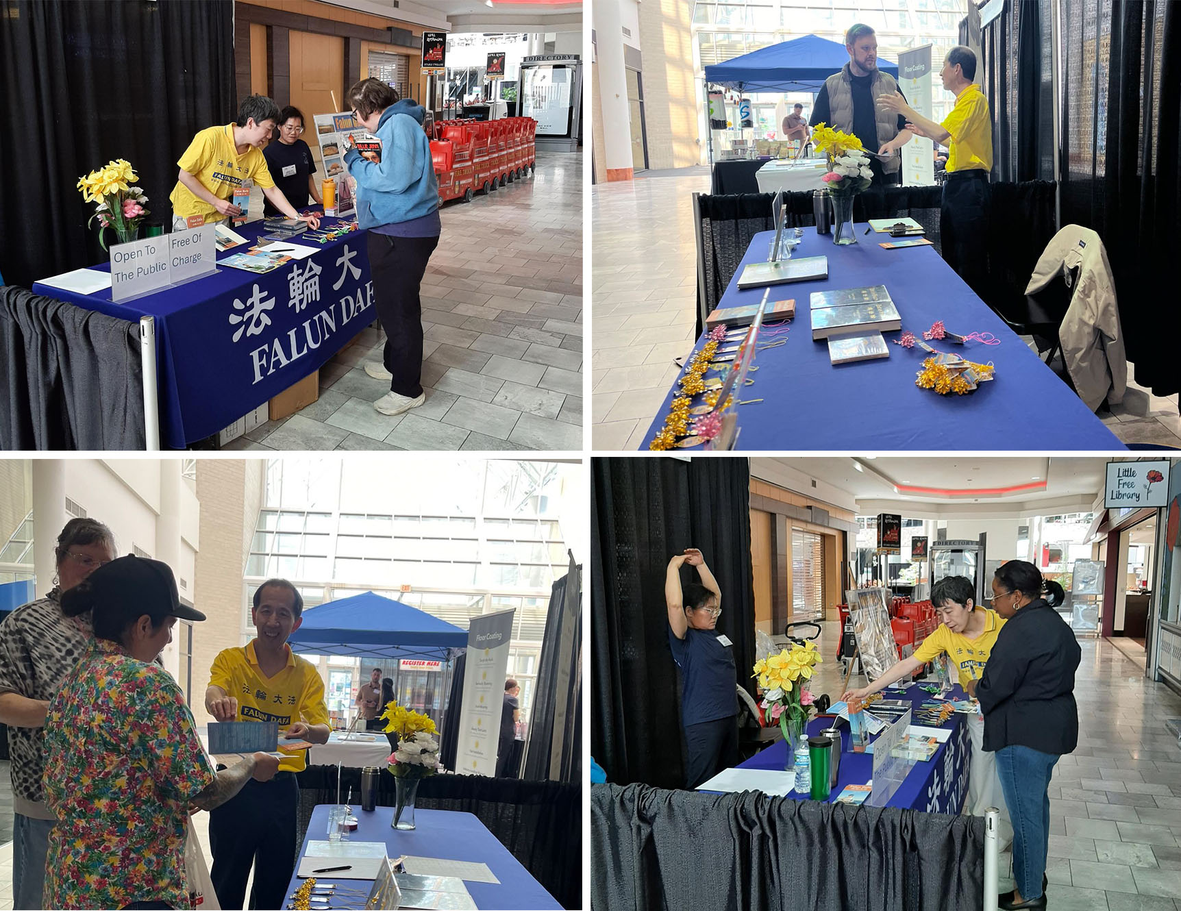 琼斯(Jones)先生在展位上驻足良久,仔细阅读每一份大法资料和倾听学员的介绍。学员告诉他,法轮功的一切书籍等资料在网上都是免费的,学员们也都是义务教功,因为每个人都是从中受益,发自内心希望与身边民众分享修炼的美好。在听到学员介绍法轮功与普通气功的最大区别是除了炼功健身外,更强调身心合一,不断对自我的心性标准提高要求时,琼斯先生眼前一亮,连连点头,认同“只有自己发自内心的想提高,才会发生本质变化”的道理,并爽快留下了自己的联系方式,期待之后有机会与学员们一起炼功。