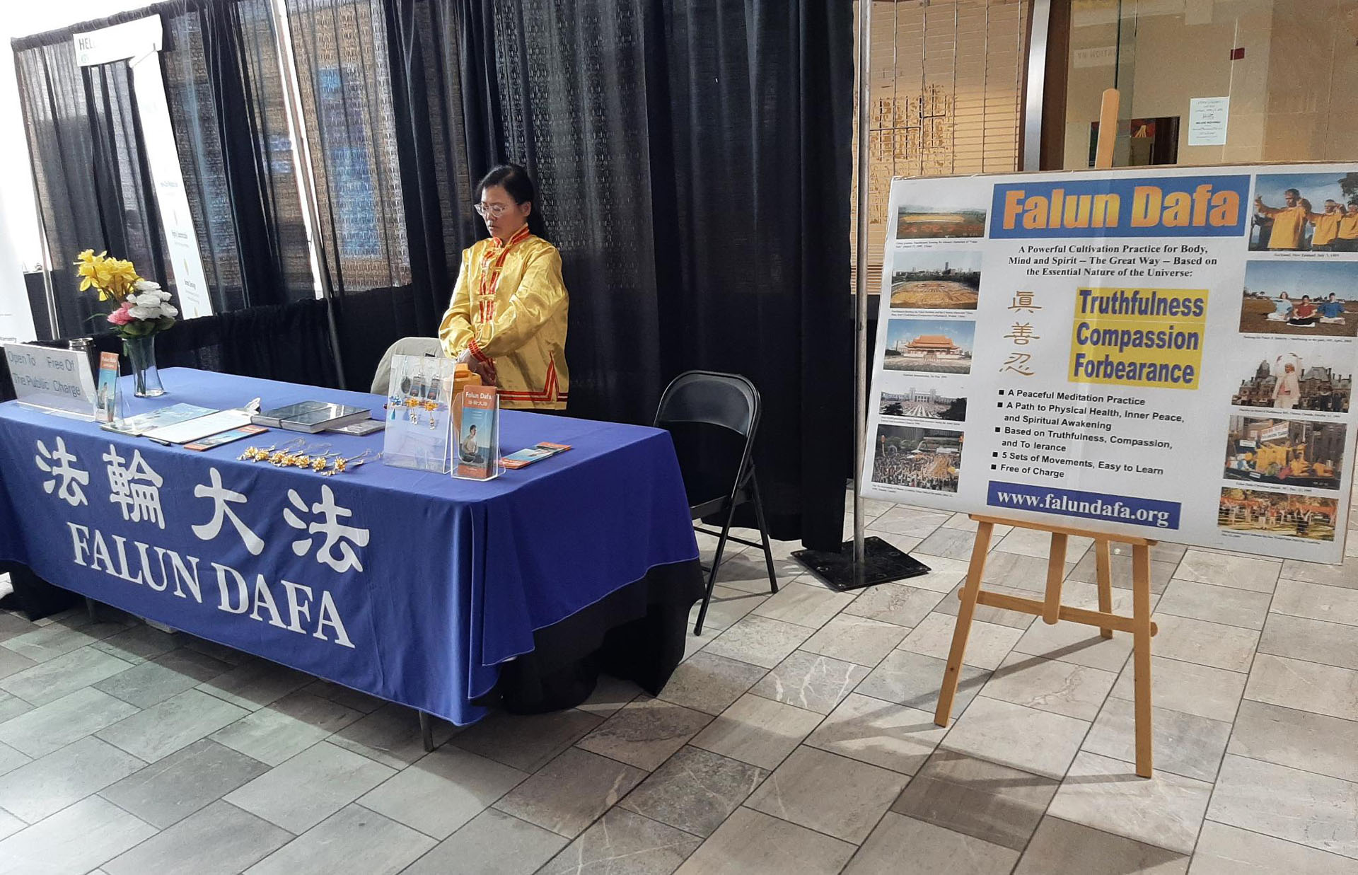 ![]() 图1:法轮功学员参加美国内布拉斯加州第十八届健康展览会,为当地民众介绍功法。 |